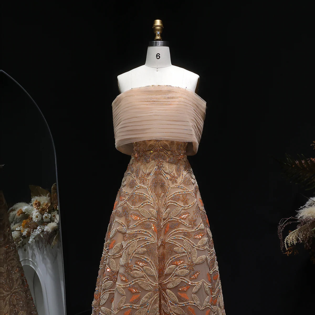 Elevate your evening elegance with this Luxury Orange Embroidered Evening Dress adorned with sparkling sequins. Expertly crafted, the intricate embroidery enhances its vibrant orange hue, while sequins catch the light to add refined shimmer. Designed for occasions that demand sophistication, this dress combines luxurious detail with a flattering silhouette, ensuring you make a memorable statement at any formal event.