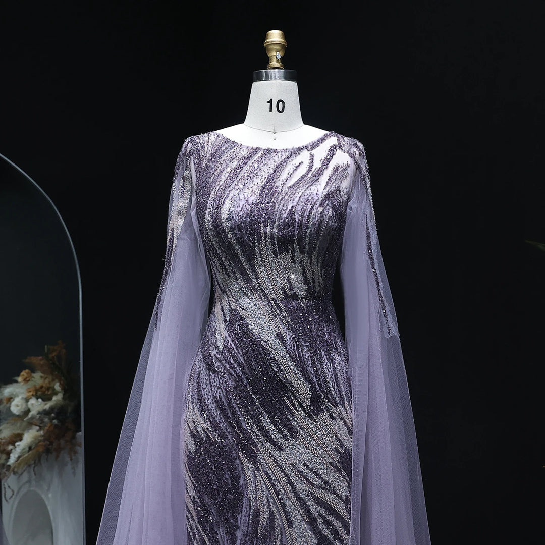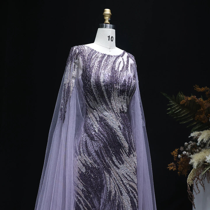 Elegant Purple Arabic Evening Dress with Cape Sleeves SS051