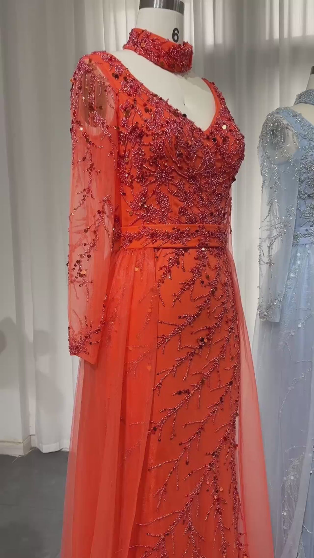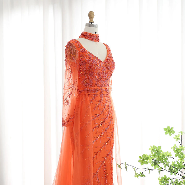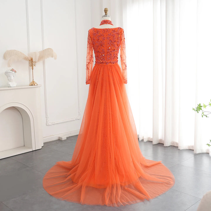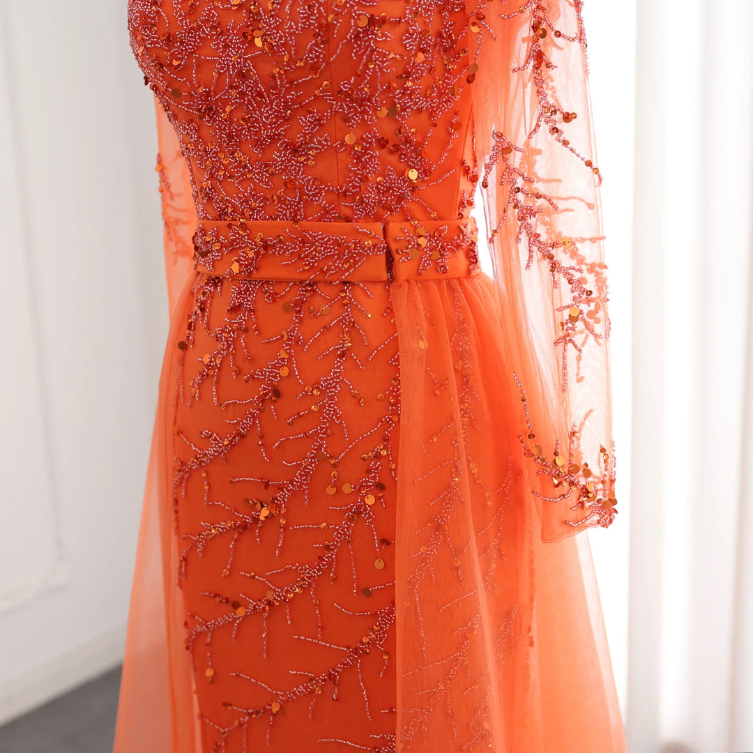 Luxury Beaded Mermaid Orange Evening Dress with Overskirt SS222
