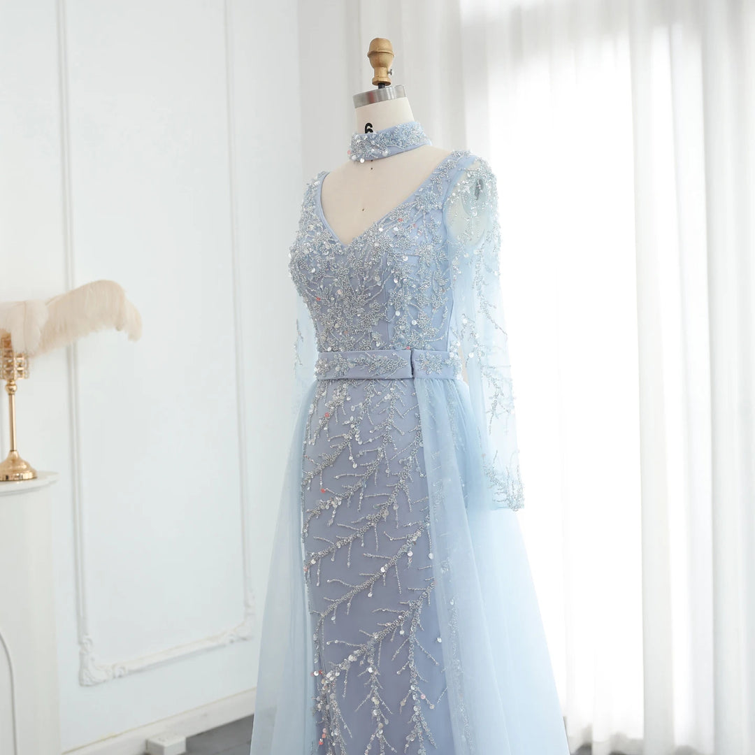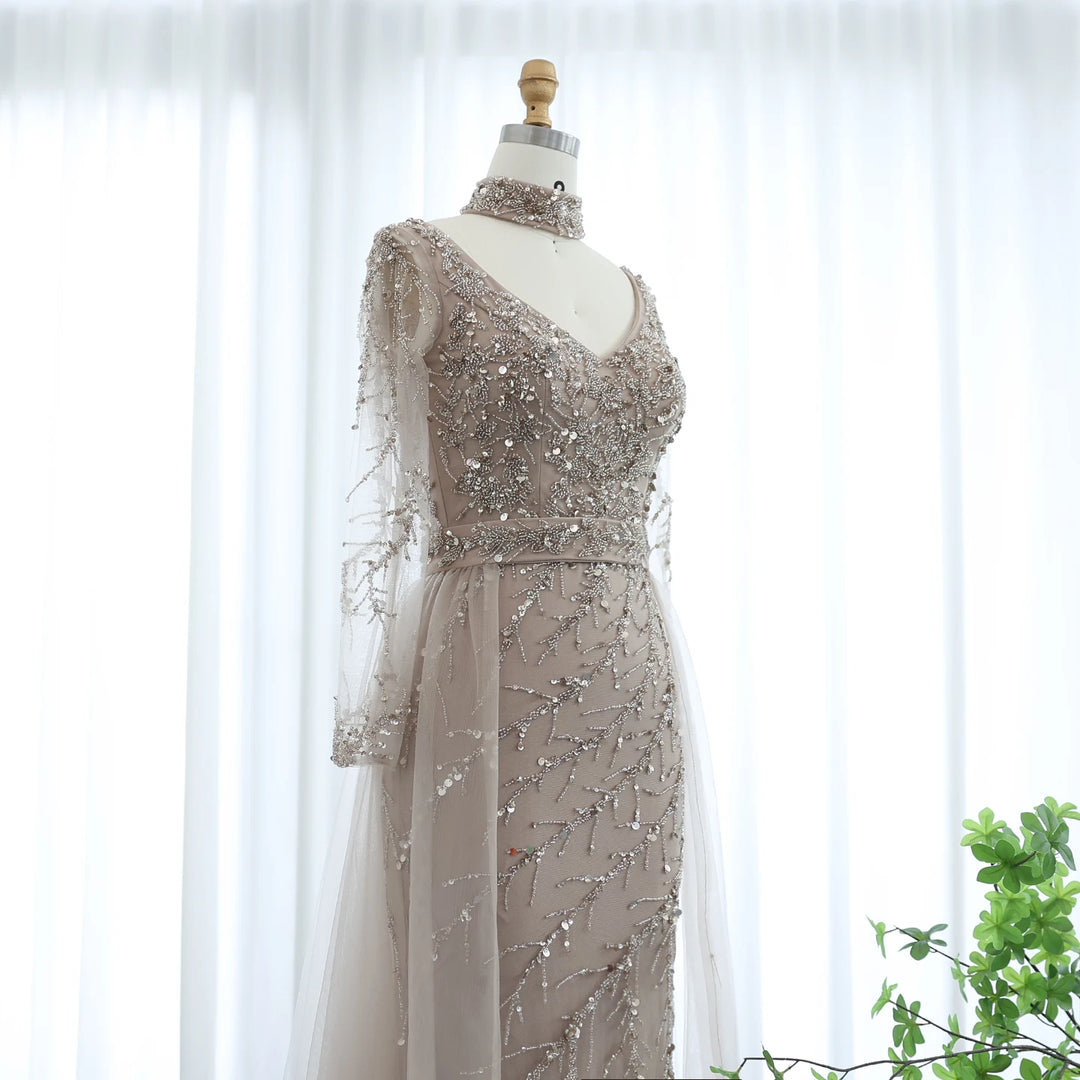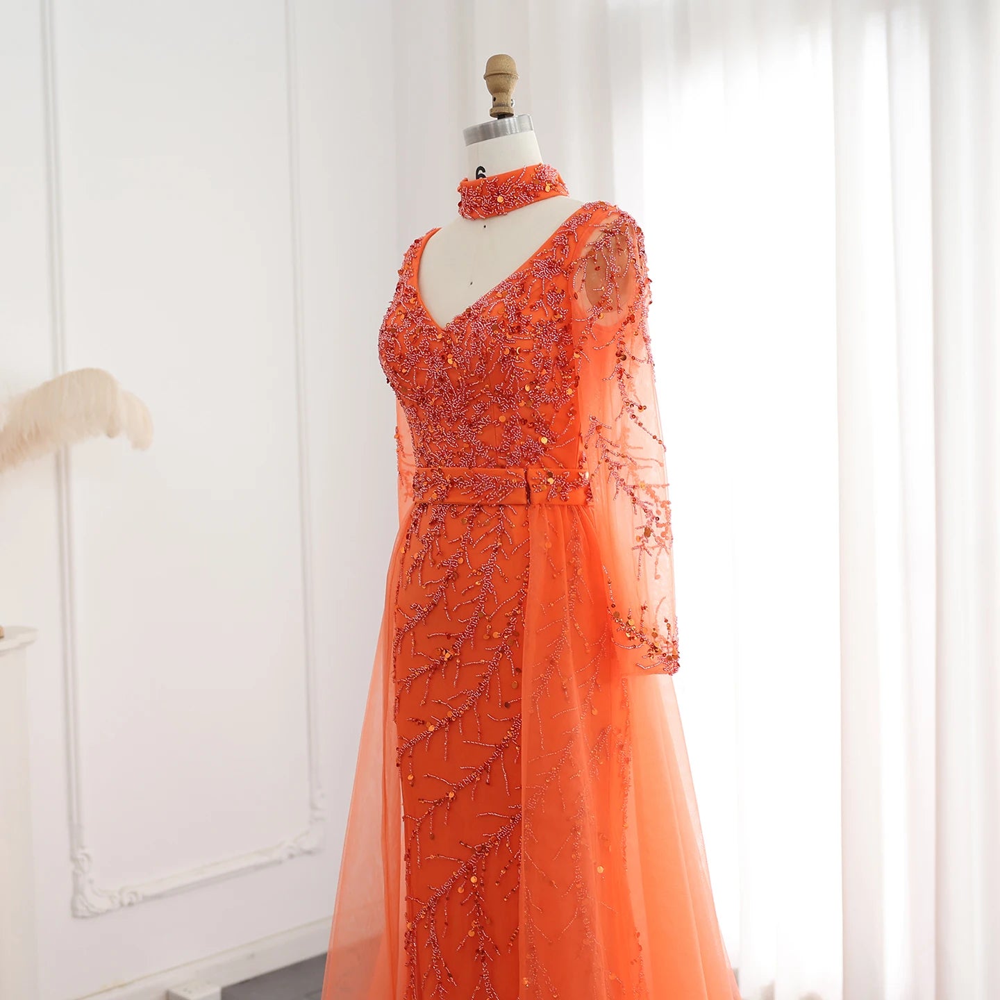 Luxury Beaded Mermaid Orange Evening Dress with Overskirt SS222
