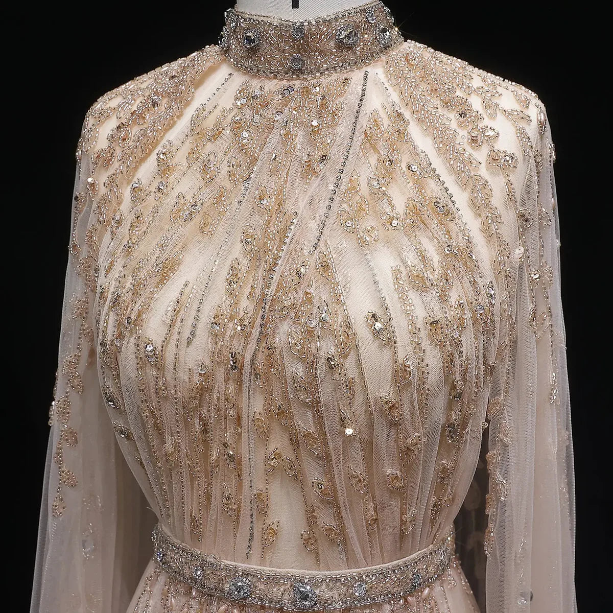 Indulge in luxury with the Dubai Evening Dress. Featuring a stunning cape sleeve and elegant design, this dress exudes timeless sophistication. Perfect for formal events and weddings, its Arabic style will make you feel like royalty. Elevate your evening look with this glamorous and timeless piece.