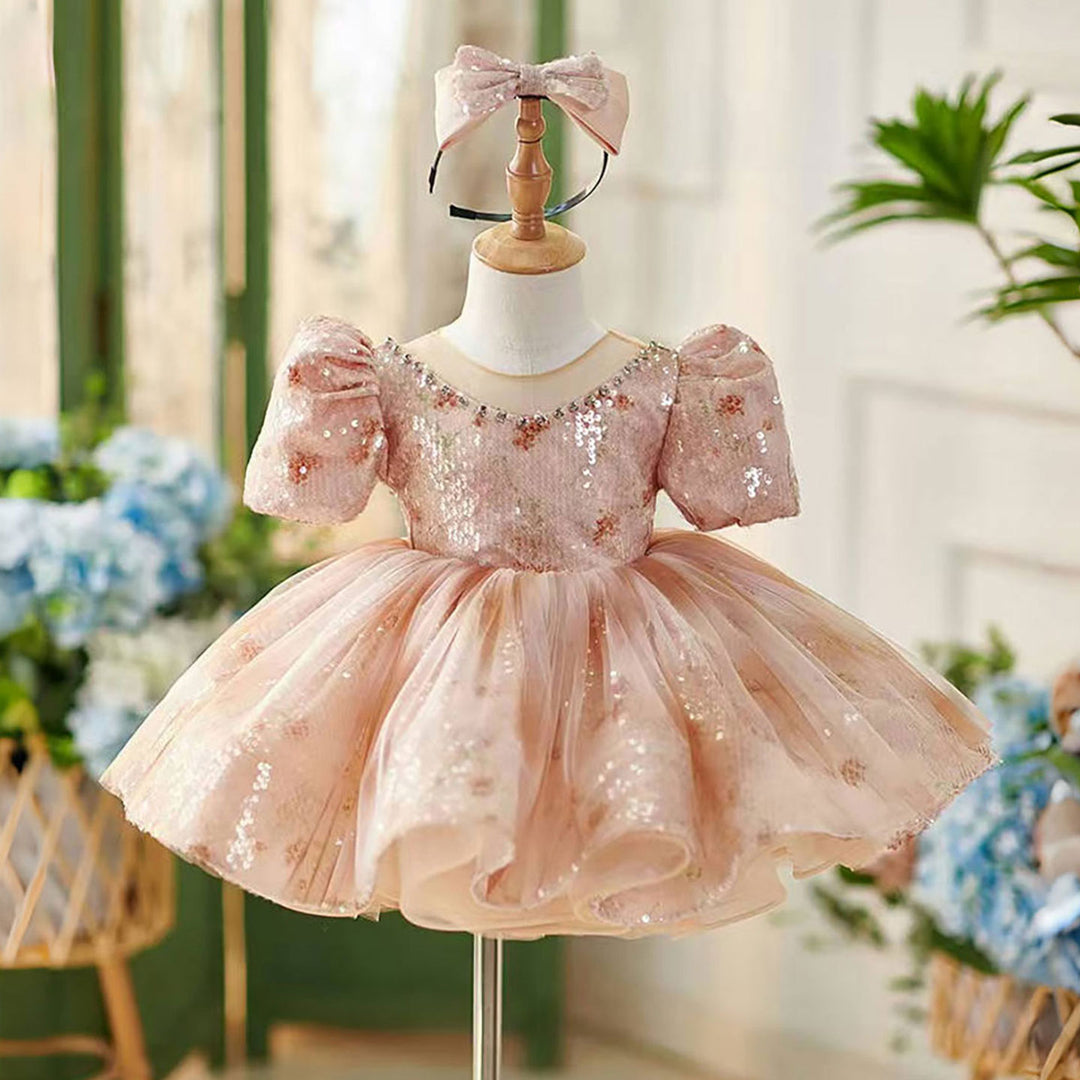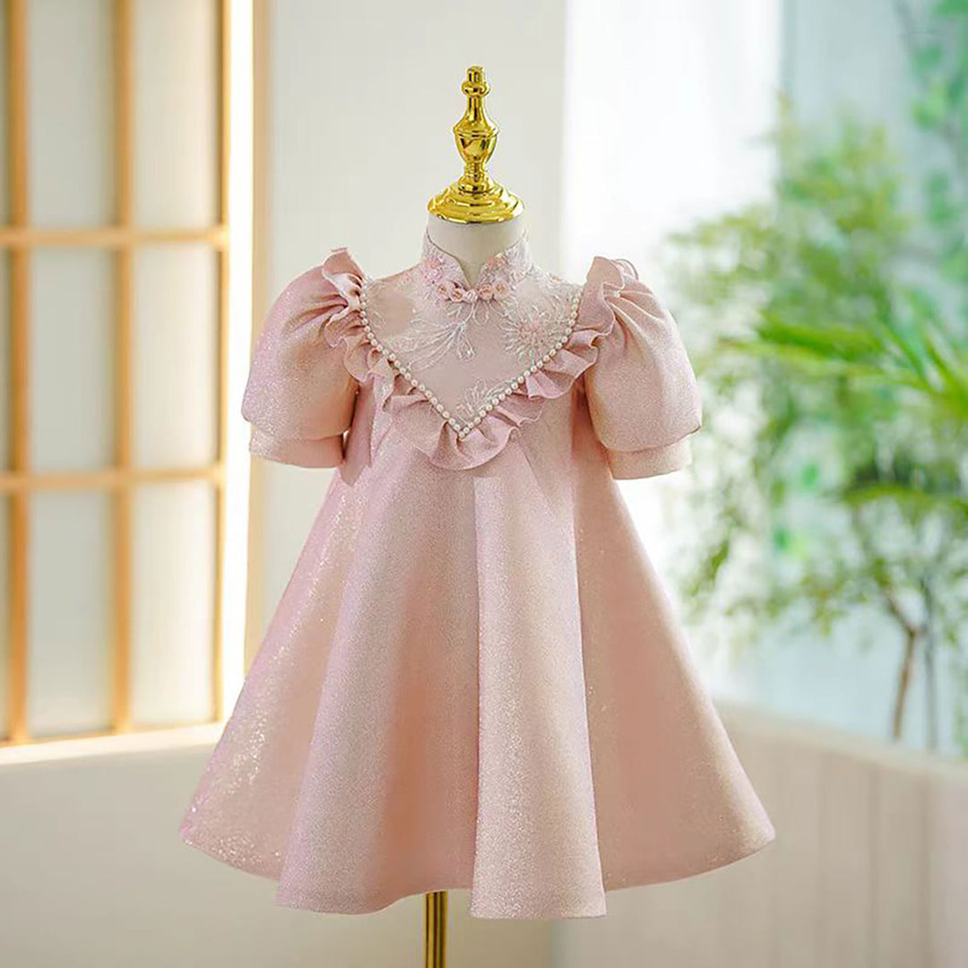 Elegant Pink Pearl Flower Girl Dress for Birthday Pageant D189