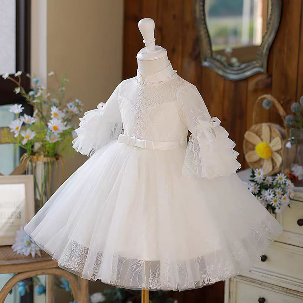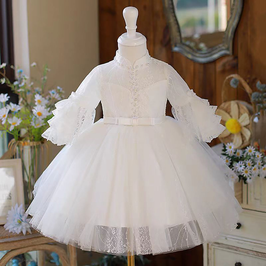 Luxury White Long Sleeve Princess Birthday Flower Girl Dress D212