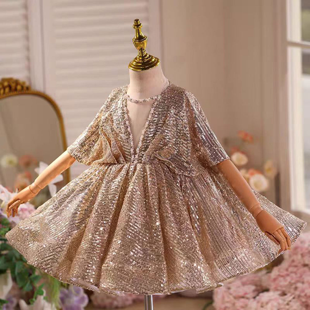 Charming Flower Girl V-Neck Dress for Birthday and Pageant Celebrations J328