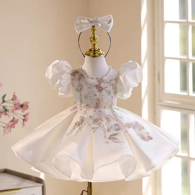 Luxury White Floral Embroidered Princess Birthday Dress J830
