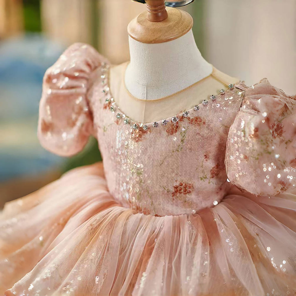 Charming Pink Girl Dress for Princess Birthday Pageant D326