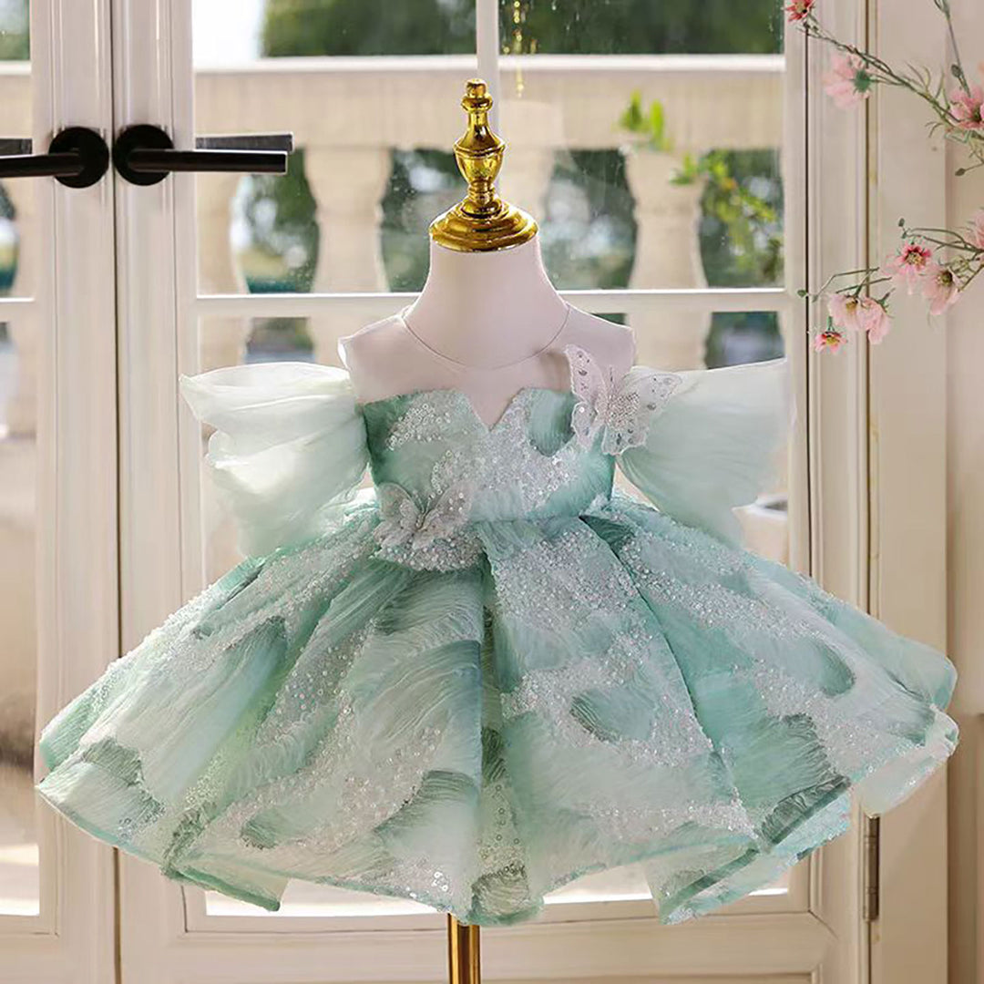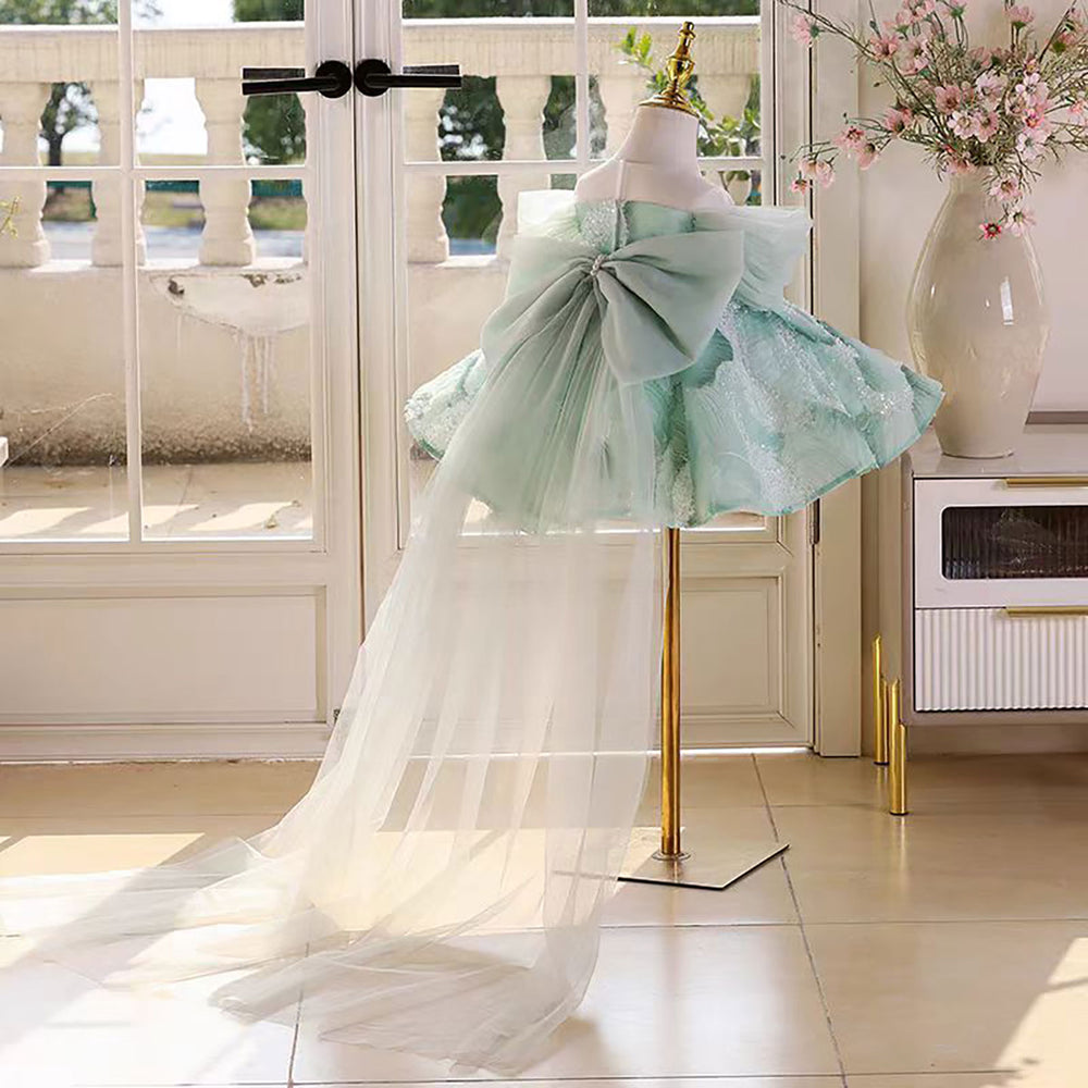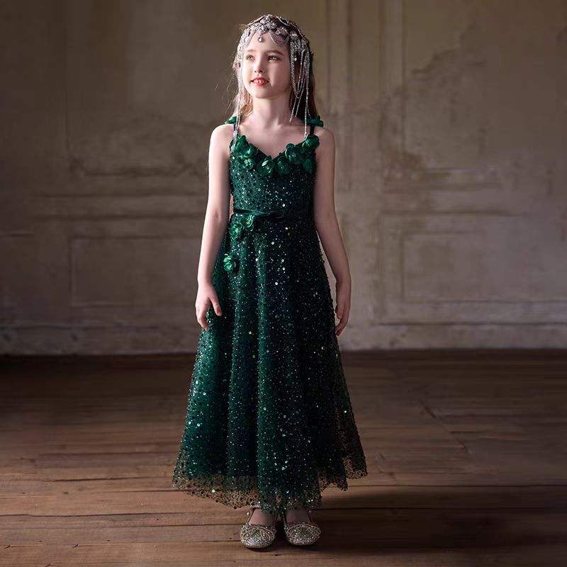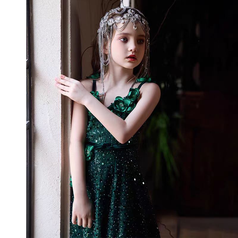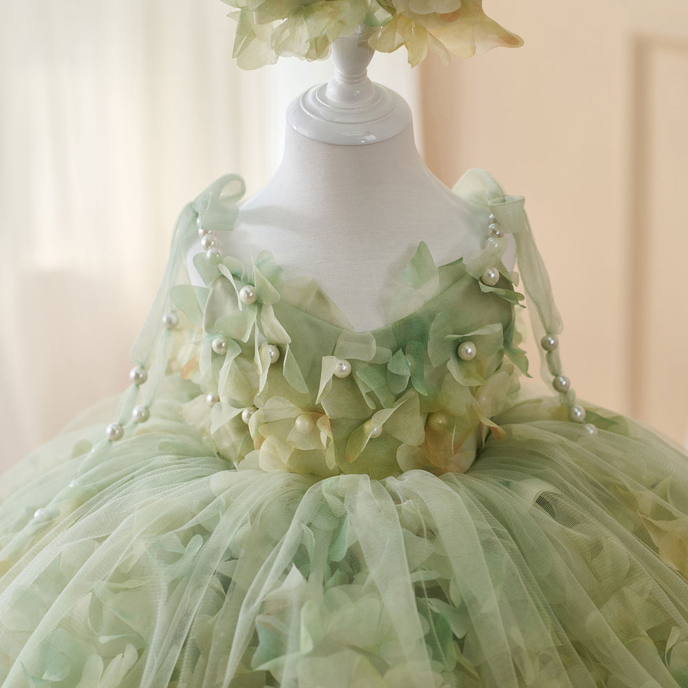 Luxury Green Long Sleeve Princess Flower Girl Dress for Birthday D213