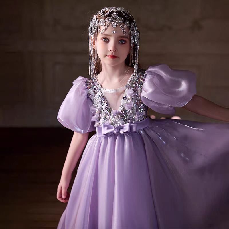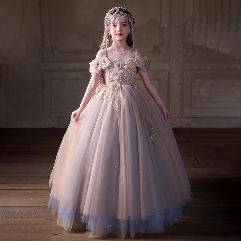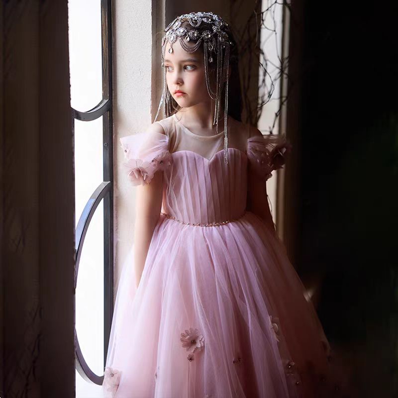 Elegant Pearl Princess Girl Dress for Birthday Party J716