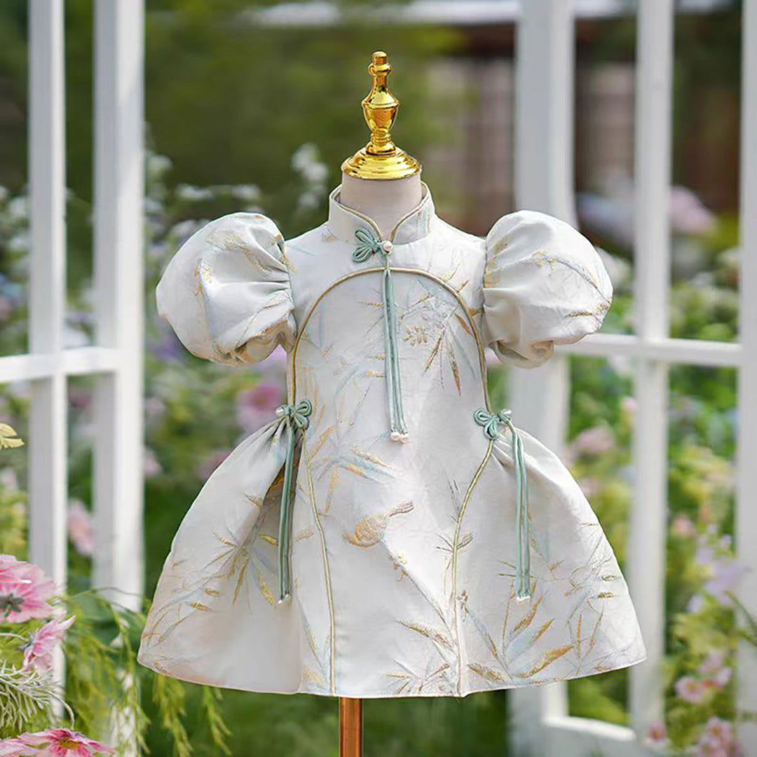 Ivory Princess Girl Gown with Puff Sleeves and Knee Length Skirt J406