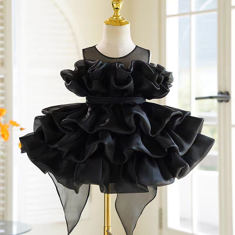 Luxury Black Flower Girl Dress for Kids Birthday Party Gown D173