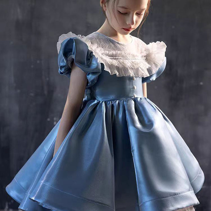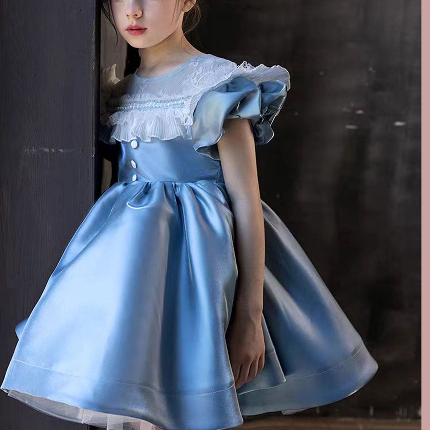 Elegant Blue Flower Girl Dress Princess Party Gowns J090