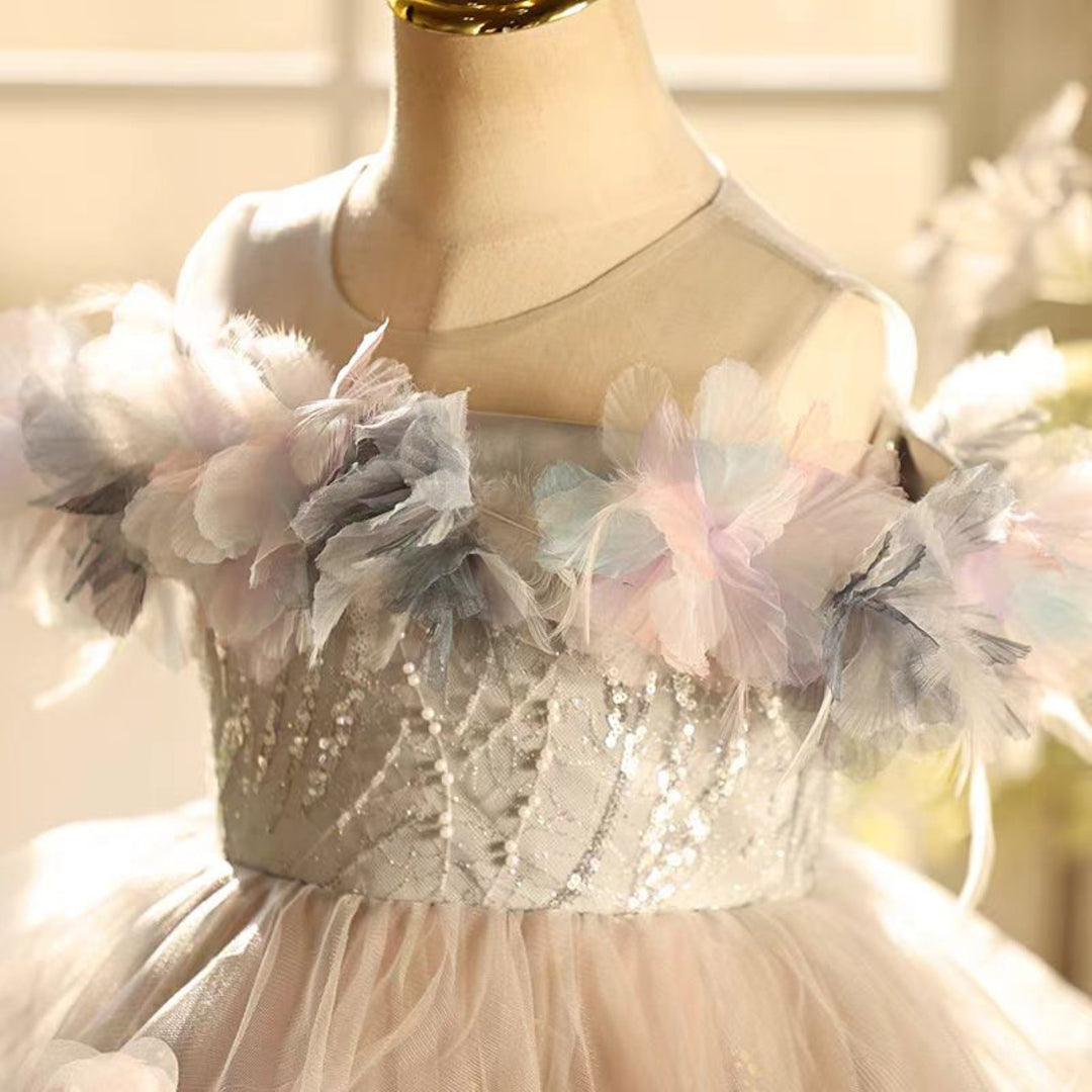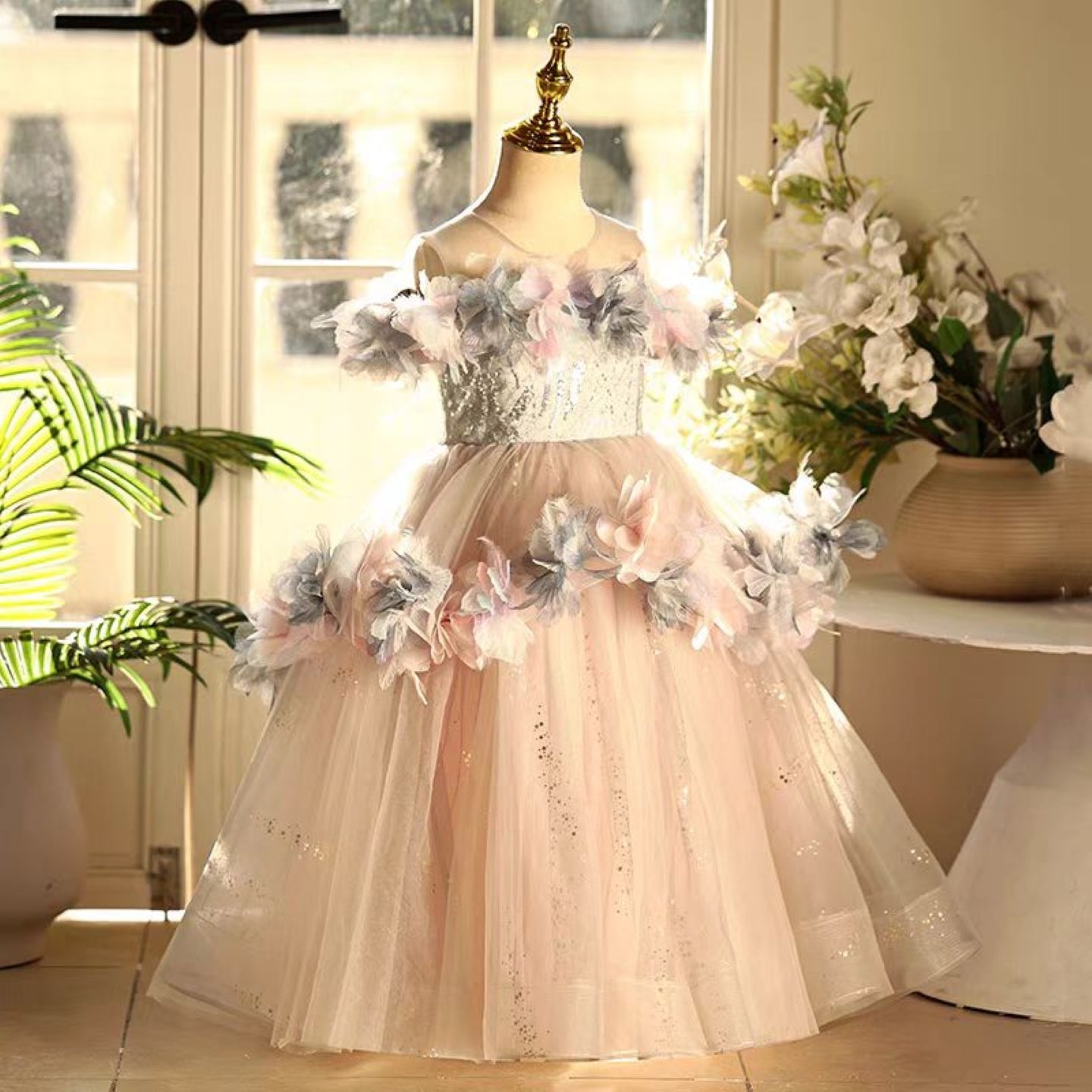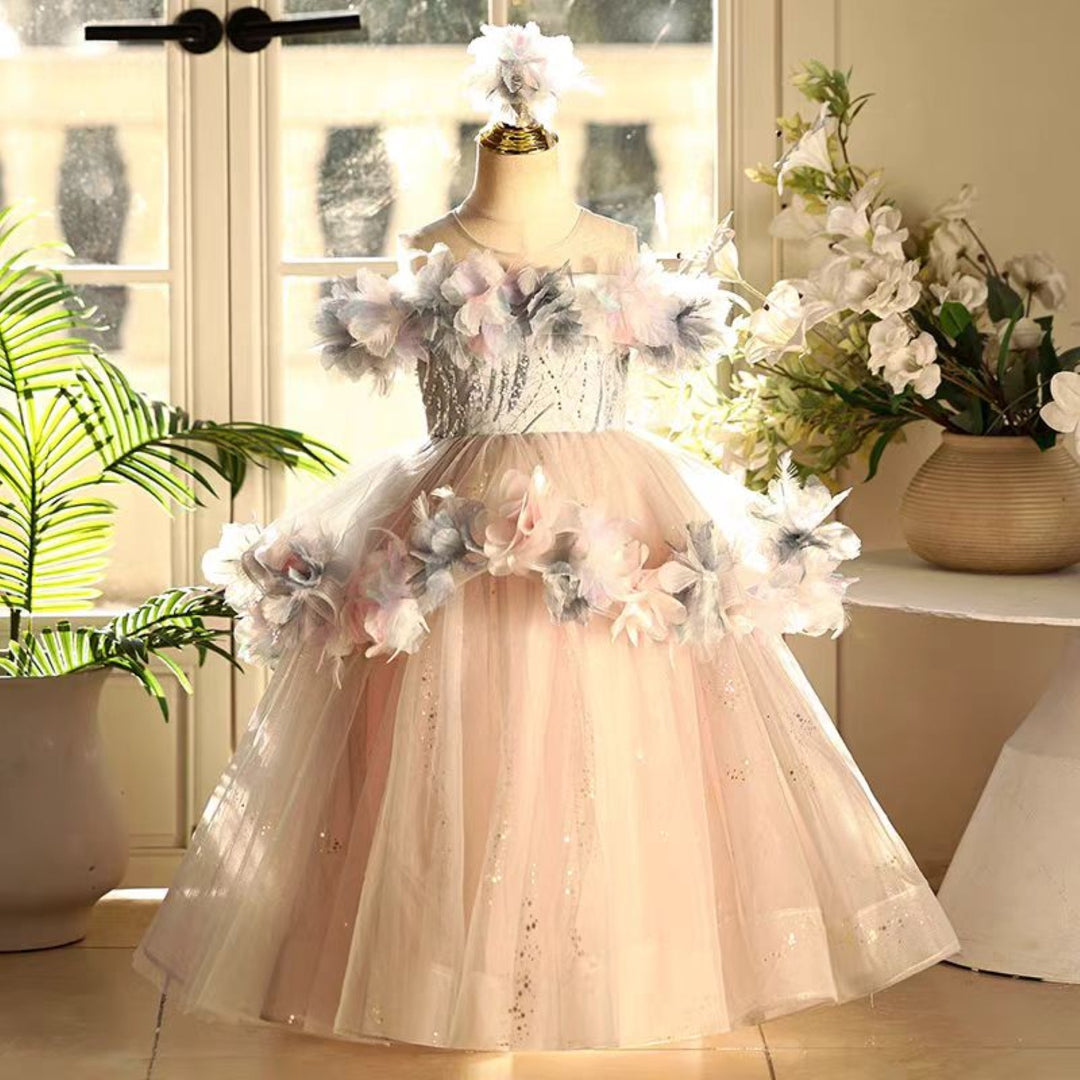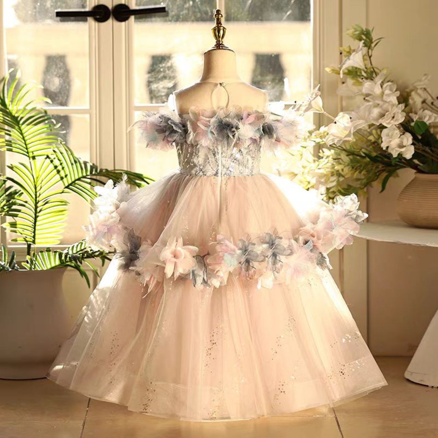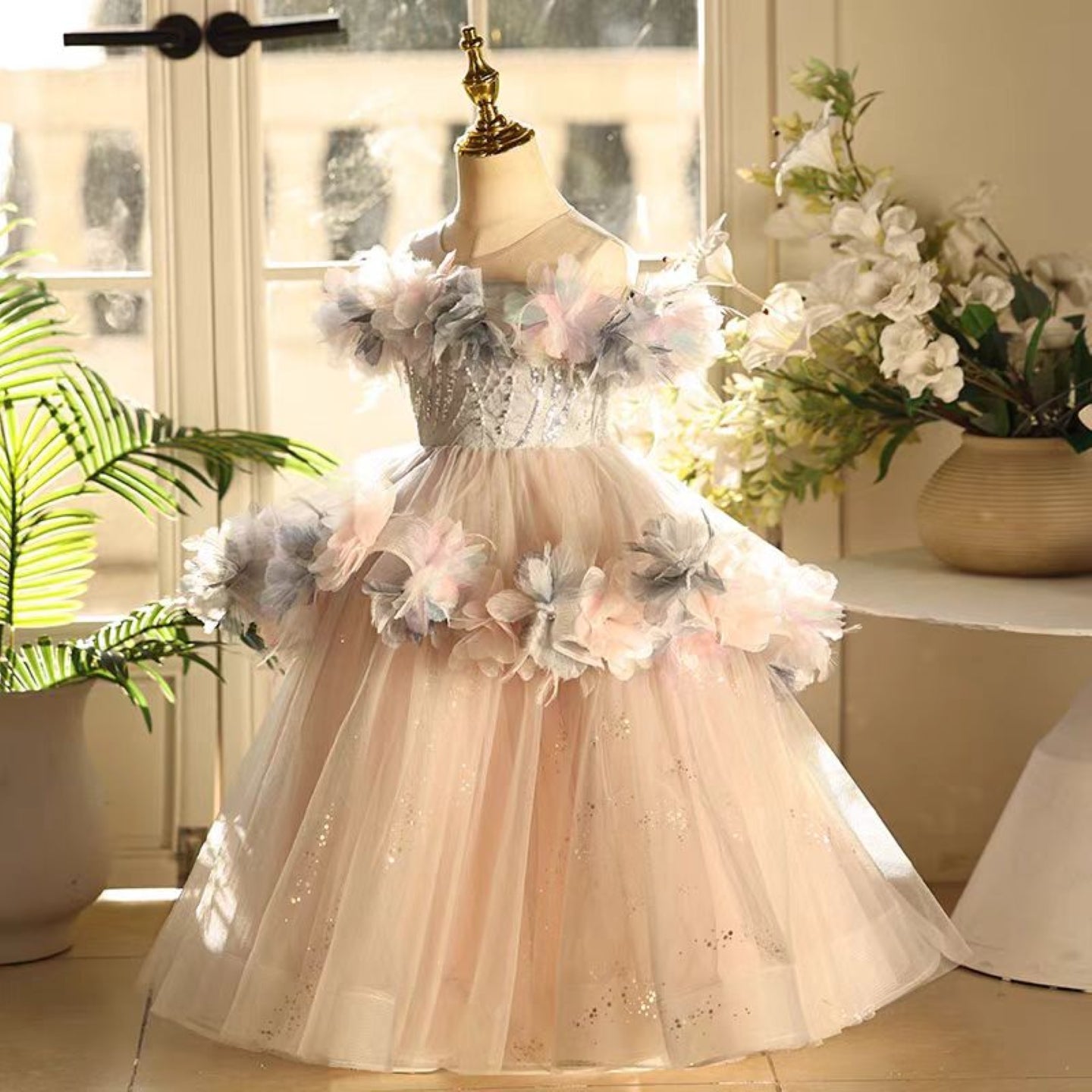 Champagne Flower Girl Dress Kids Birthday Party Holiday J755