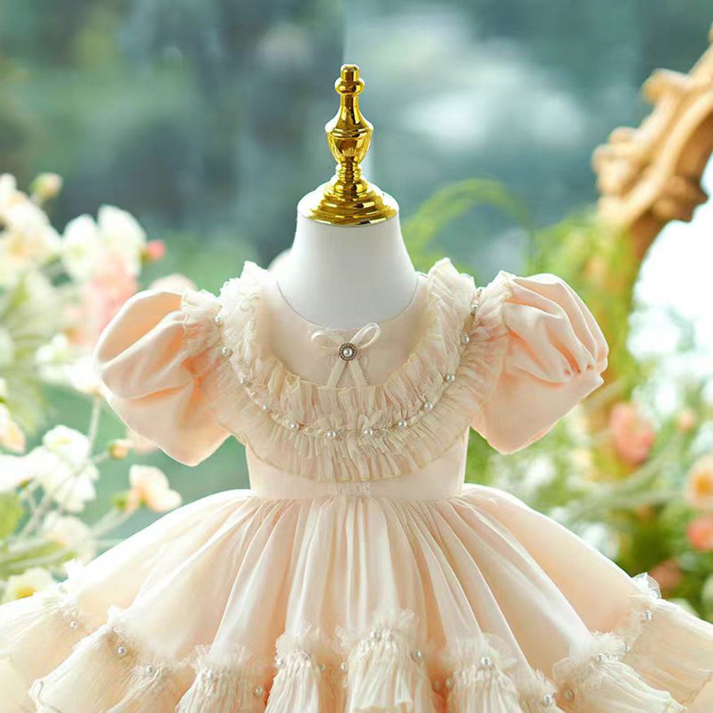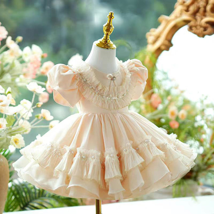 Champagne Tulle Girl Dress Lace Toddler Kids 1st Birthday Gown J456
