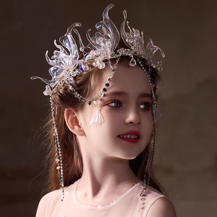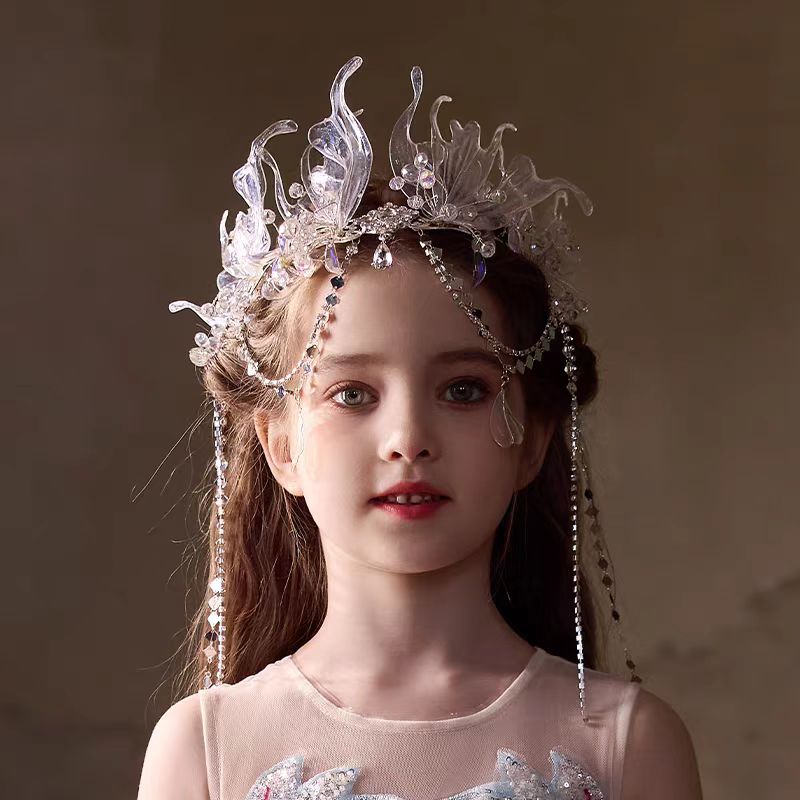 Dreamy Girl High-end Crown Mermaid Hair Accessories Birthday Piano Tassel Headband W024