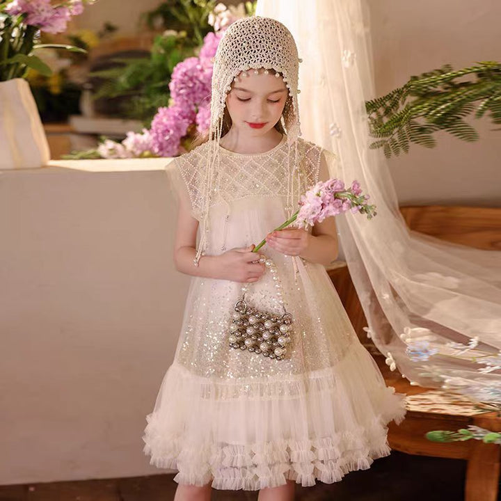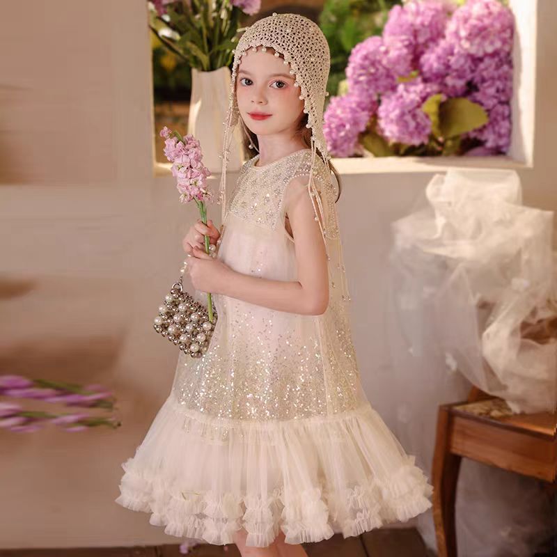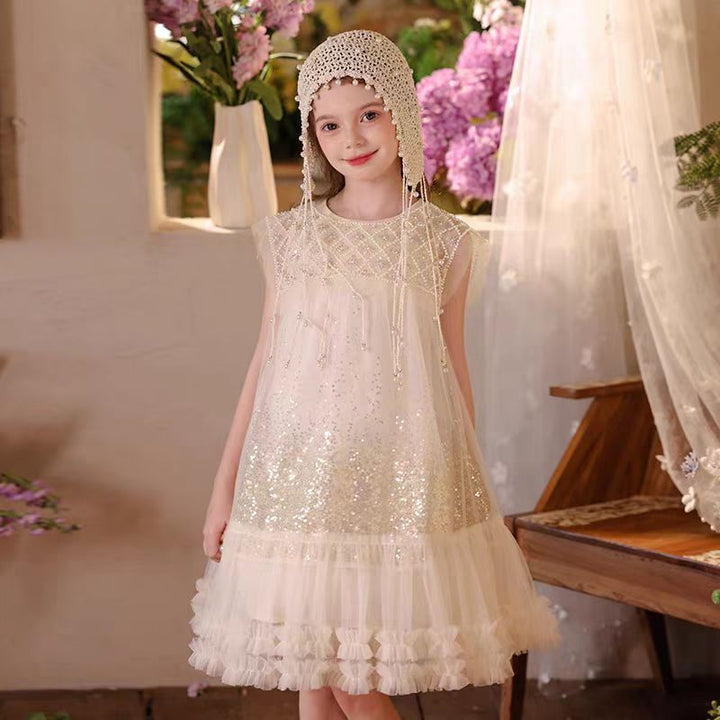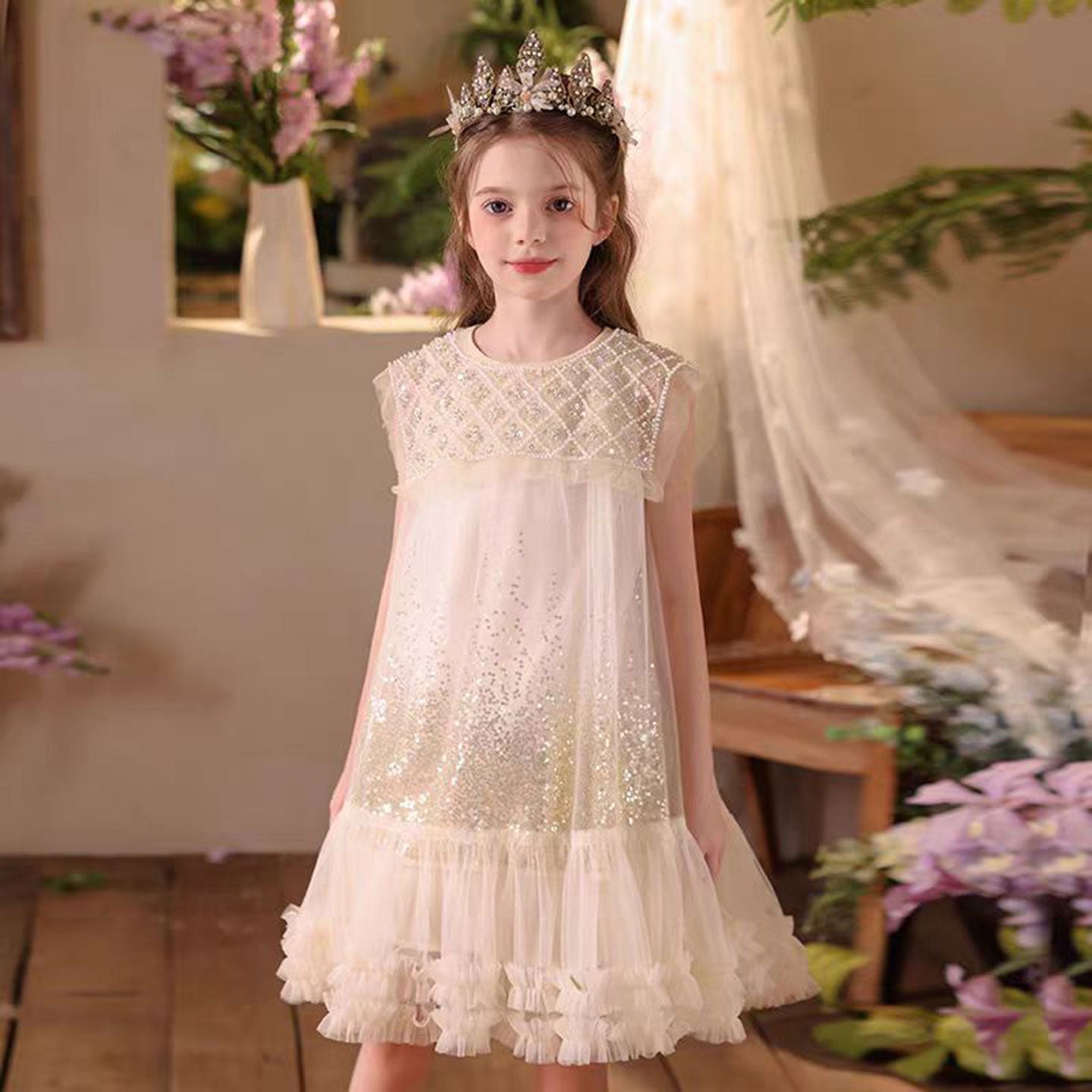 Introducing the Dreamy Luxury O-Neck Beaded Tulle Flower Girl Dress! With a stunning design and expertly crafted beaded details, this dress exudes elegance and sophistication. The sleeveless style and breathable tulle fabric ensure comfort for your little one, making it perfect for any special occasion.
