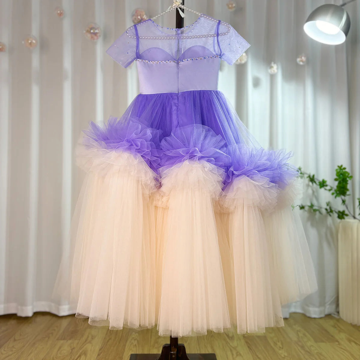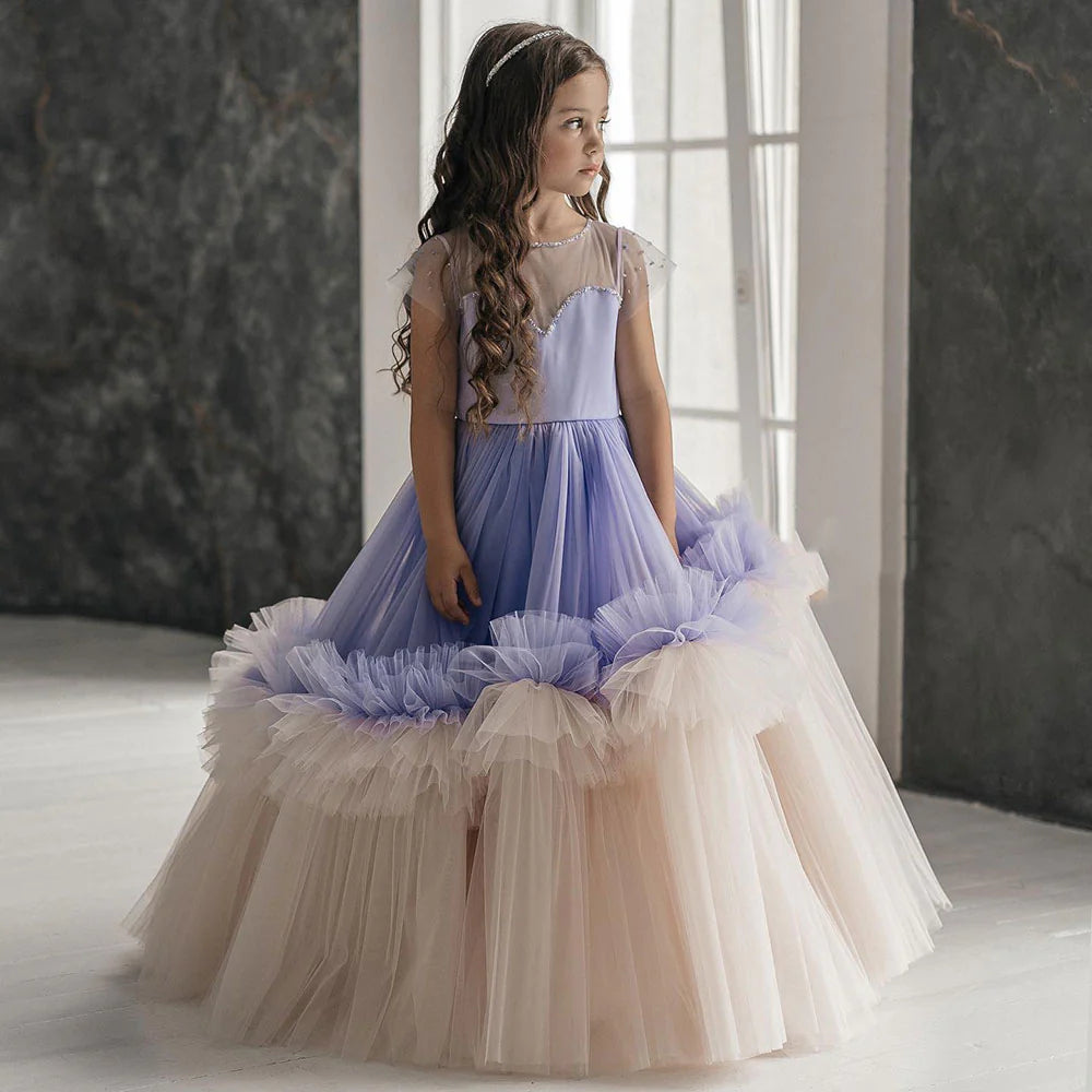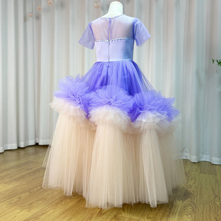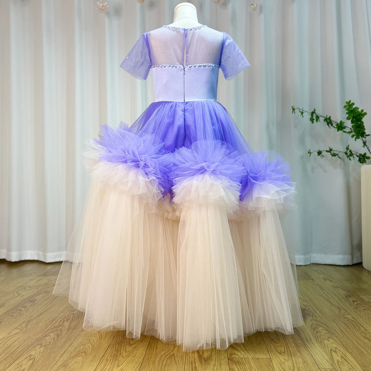 DreamyVow Elegant Arabic Blue Girl Dress Beads Dubai Baby Kids Princess Birthday Wedding Party Ball Evening Gown 2024 J102-DreamyVow