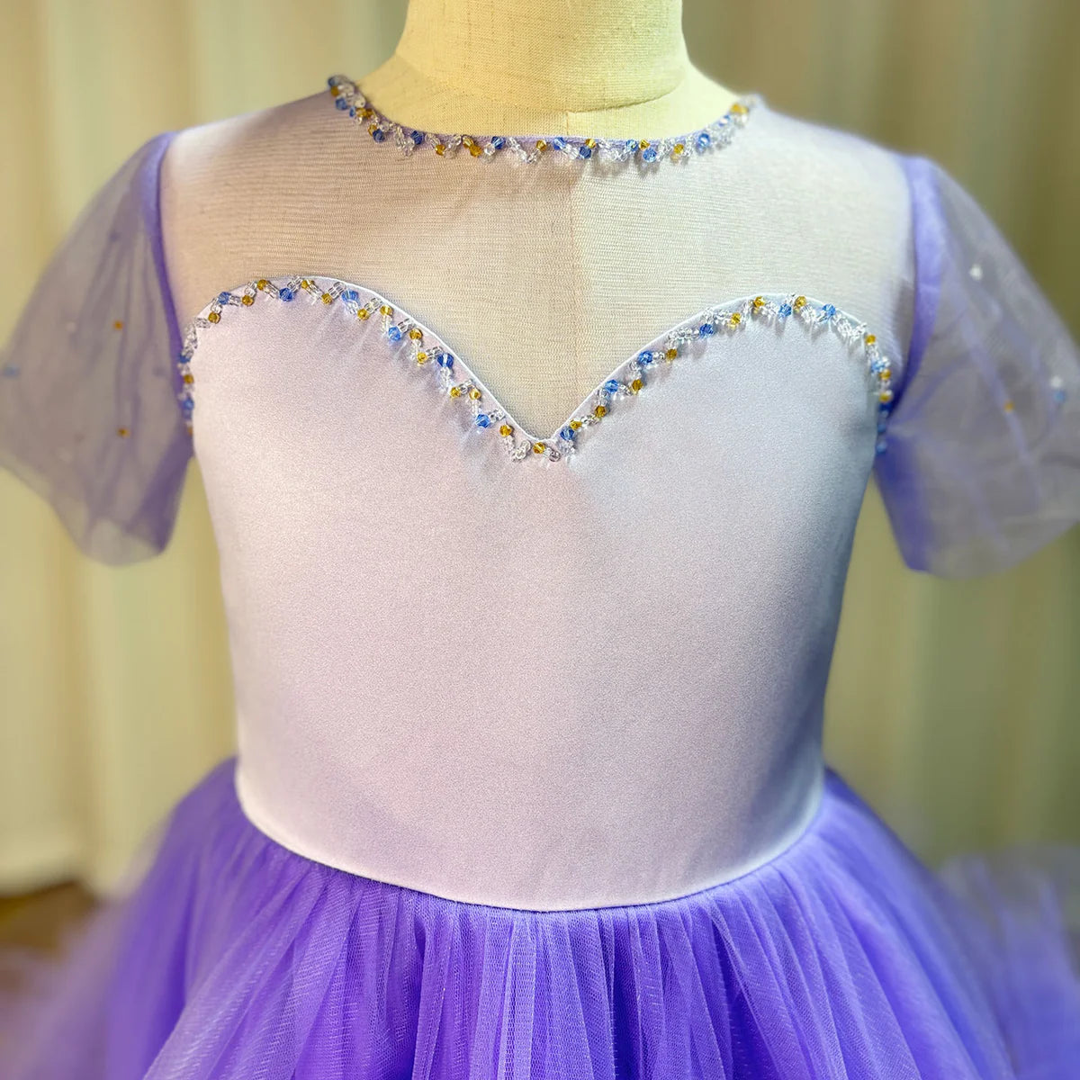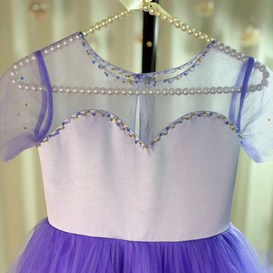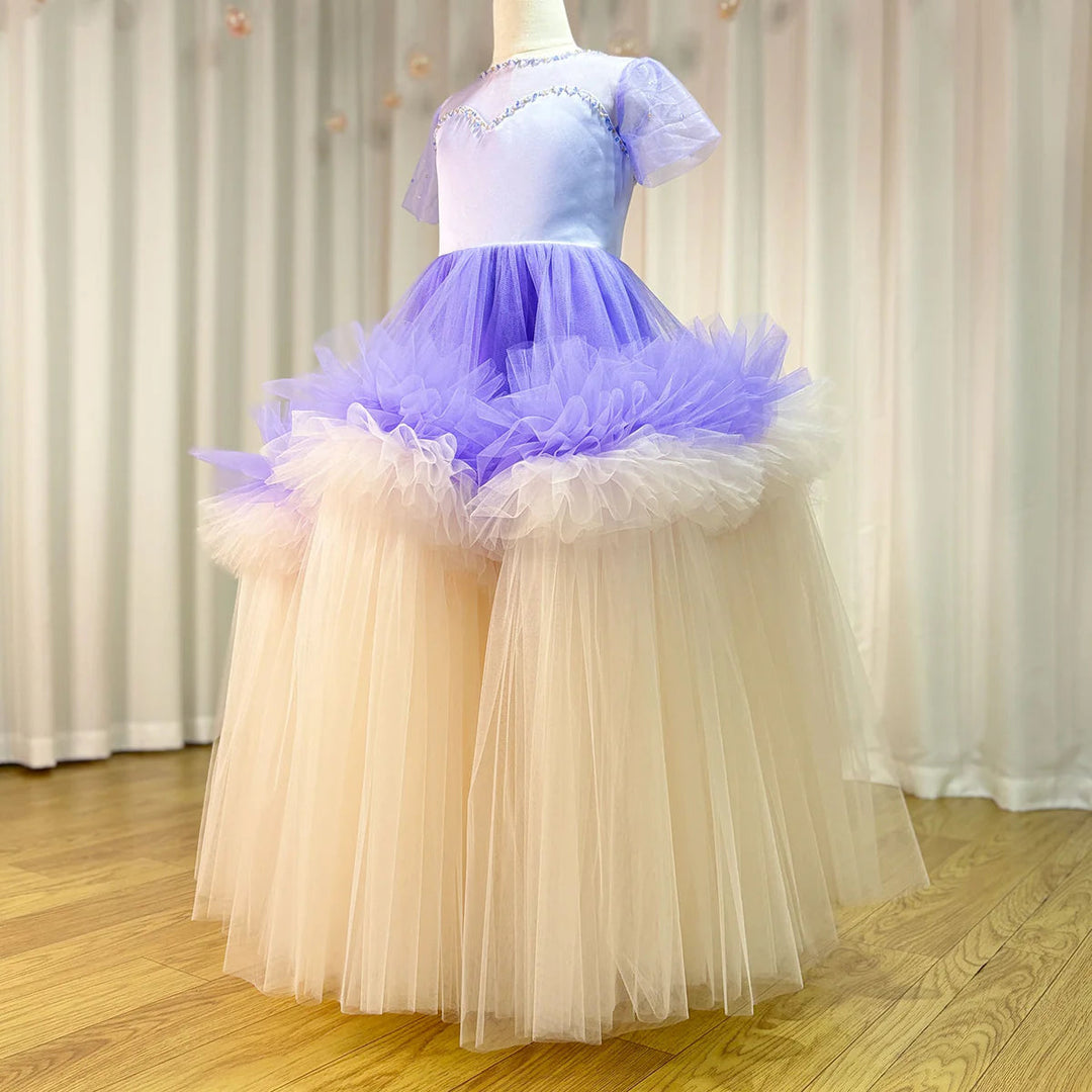 DreamyVow Elegant Arabic Blue Girl Dress Beads Dubai Baby Kids Princess Birthday Wedding Party Ball Evening Gown 2024 J102-DreamyVow