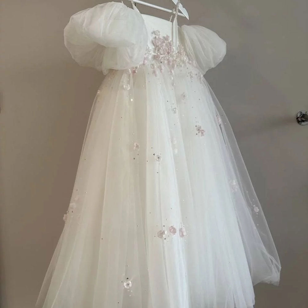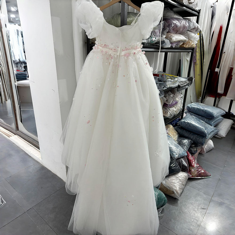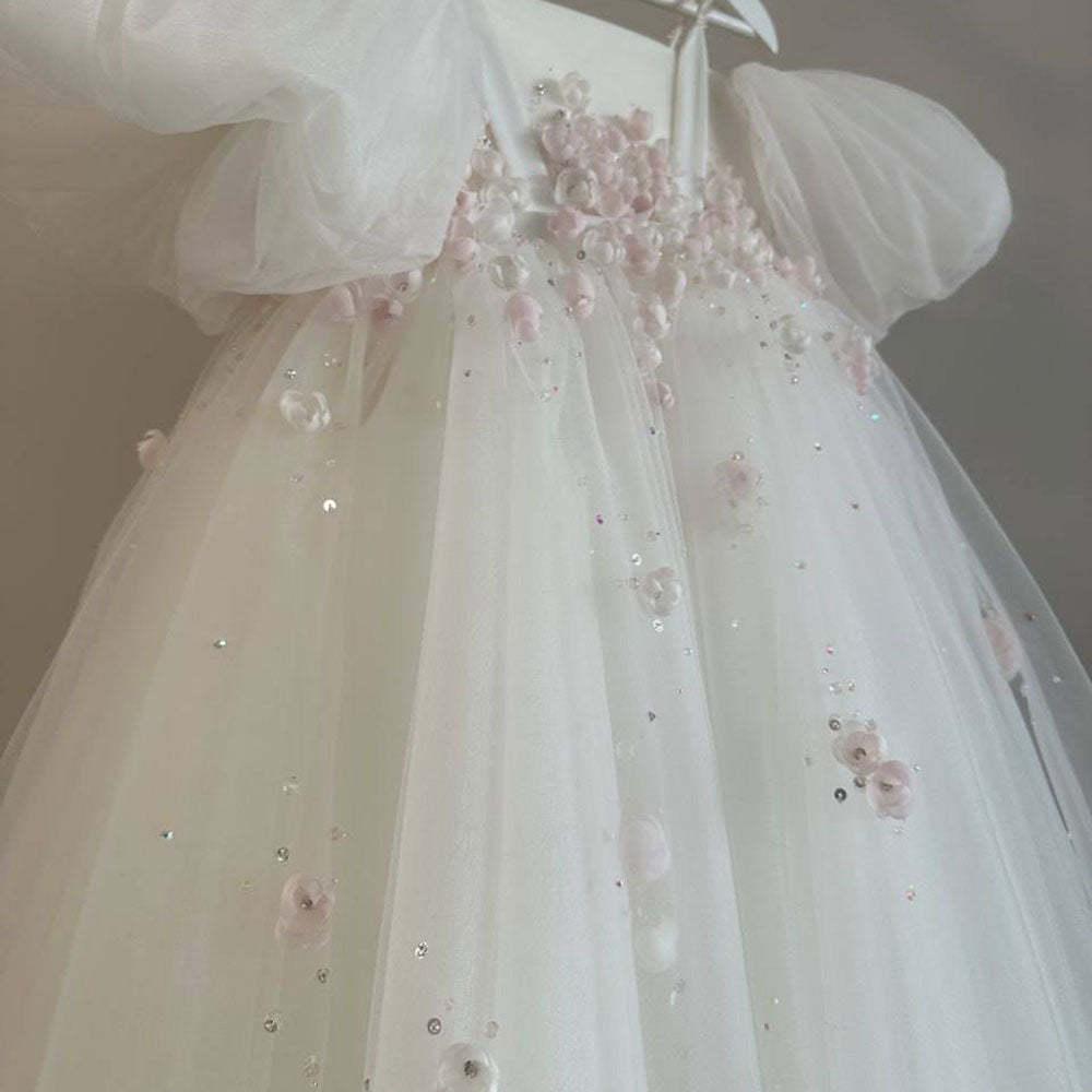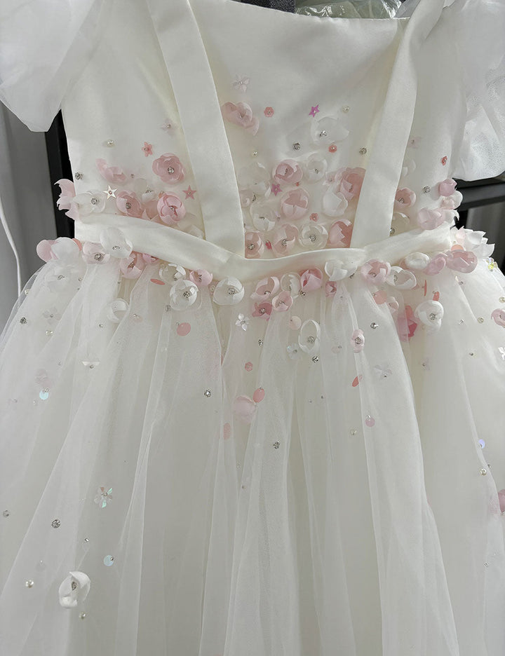 The Dreamy Vow Elegant White Girl Dress is a stunning ball gown designed for special occasions. With gorgeous appliques and intricate beading, this dress adds a touch of elegance to any event. Perfect for weddings, birthdays, and first communions, this dress is sure to make your child feel like a princess. Available in 2024 J313