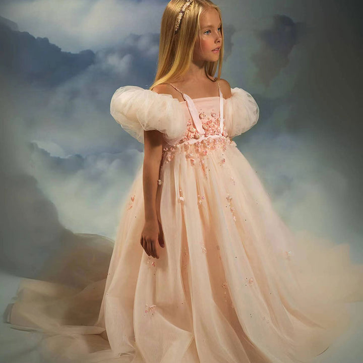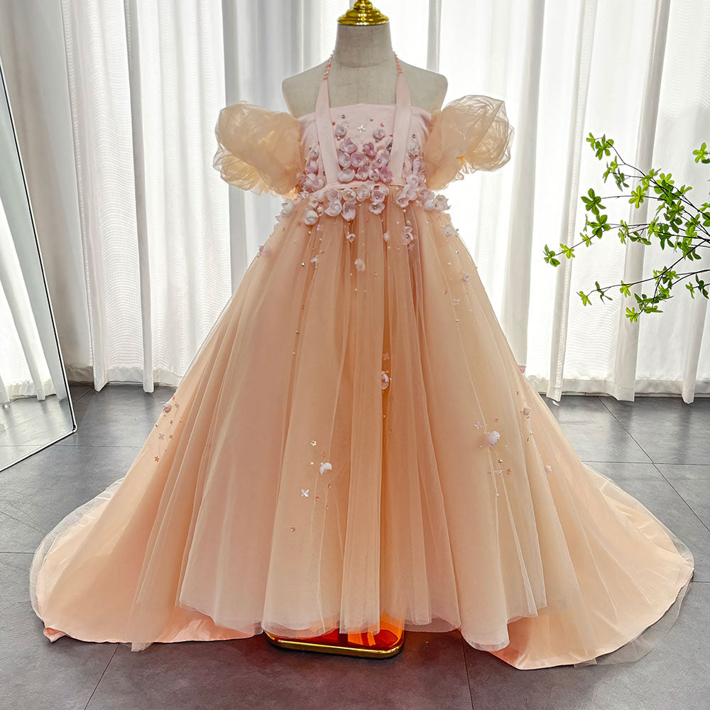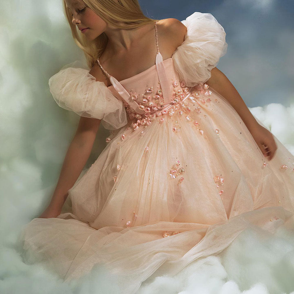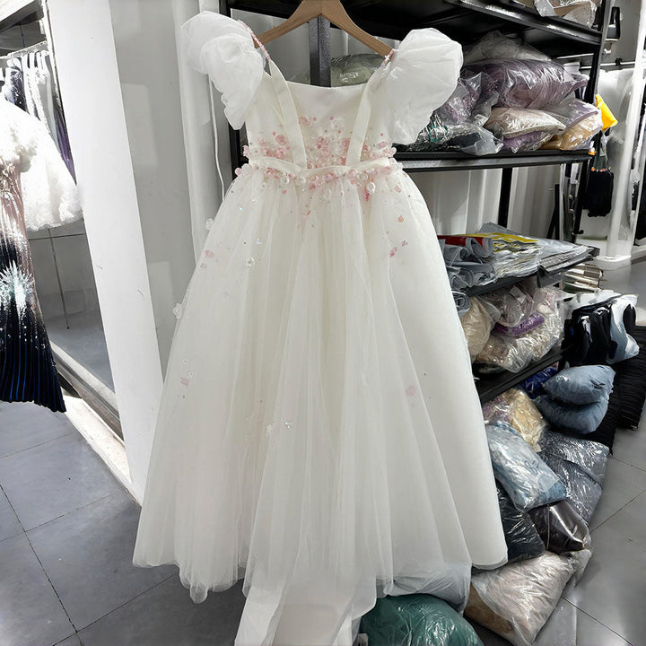 The Dreamy Vow Elegant White Girl Dress is a stunning ball gown designed for special occasions. With gorgeous appliques and intricate beading, this dress adds a touch of elegance to any event. Perfect for weddings, birthdays, and first communions, this dress is sure to make your child feel like a princess. Available in 2024 J313