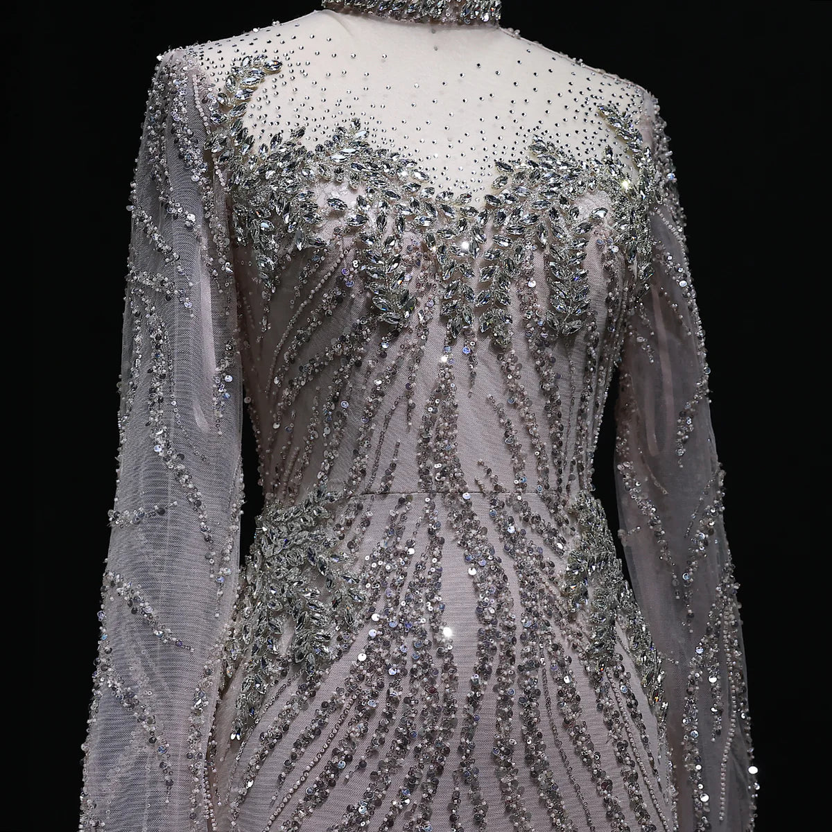 Luxury Nude Beaded Long Sleeve Evening Dress SS623