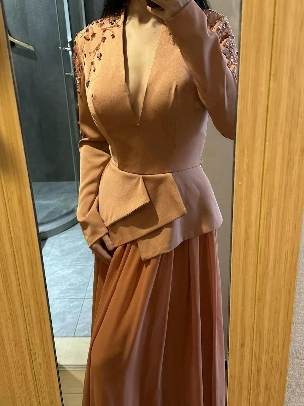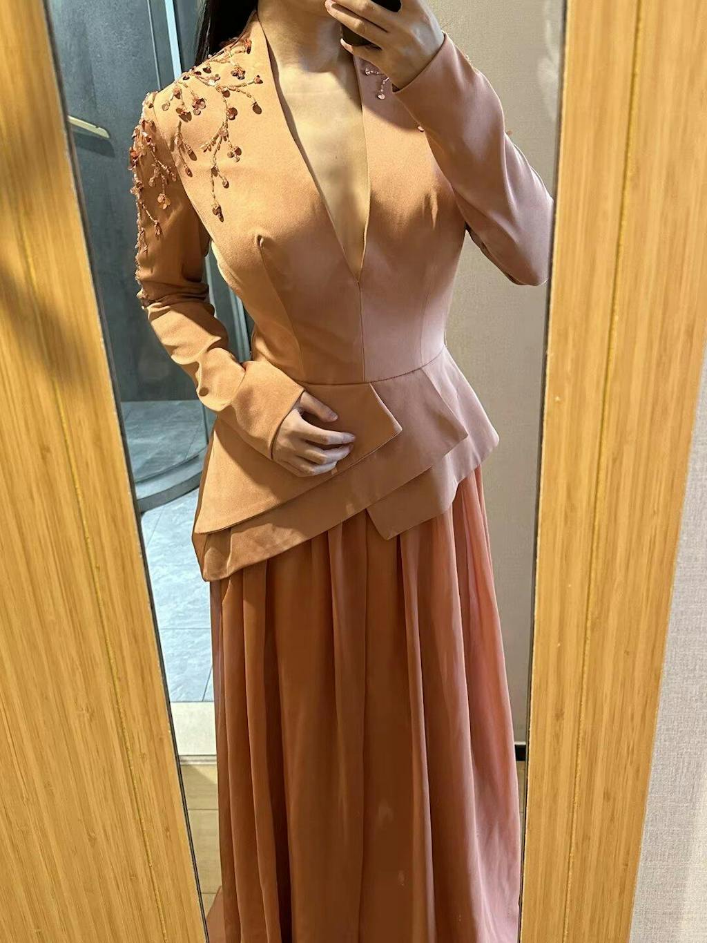 Elegant Long Sleeve Brown Beaded Evening Dress SS216