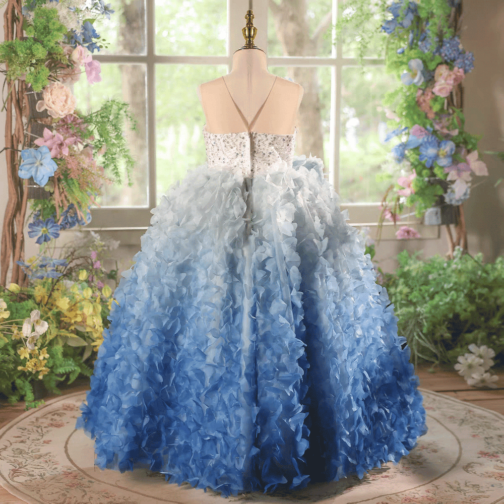 Blue Ombre Flower Girl Dress with 3D Floral Layers Kids Princess Ball Gown J615