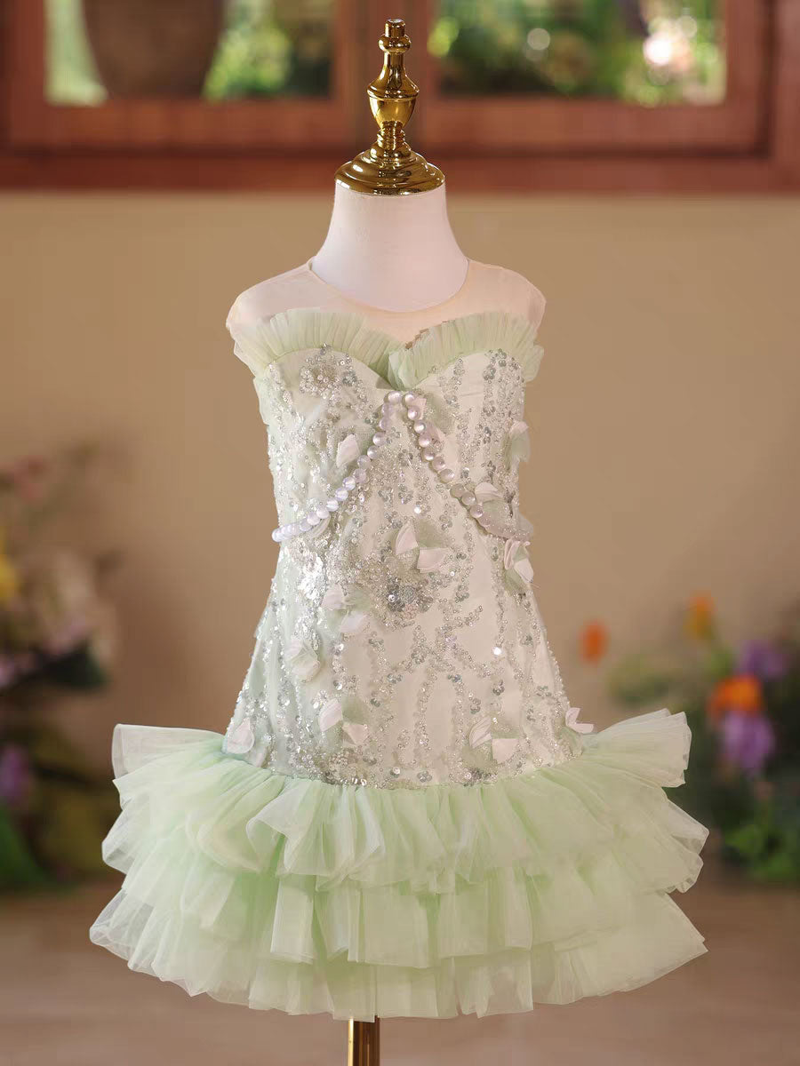 Sleeveless Pearled Flower Girl Dress Knee-Length J558