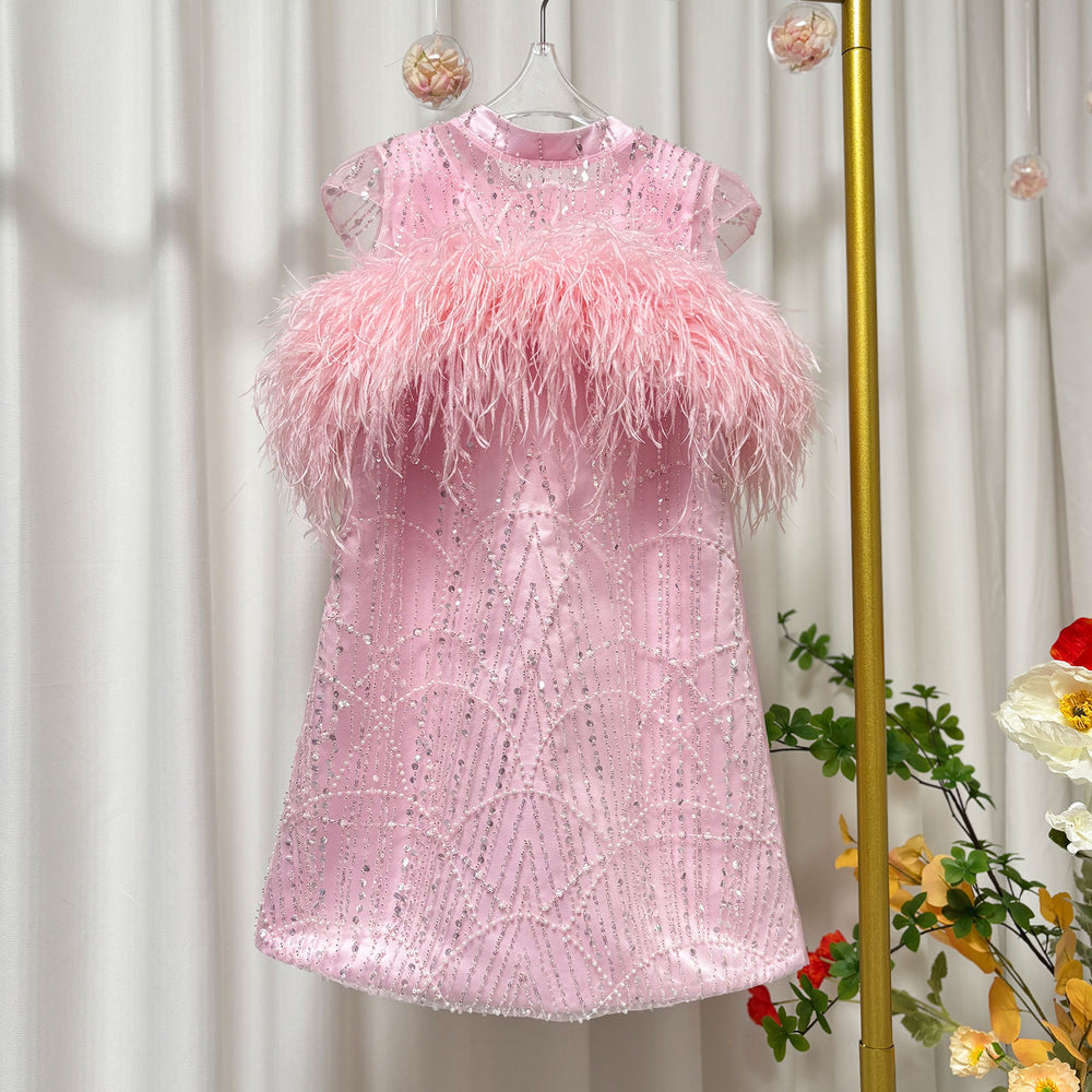 Girl Dress Feather for Kids Wedding Birthday Party Gown J739