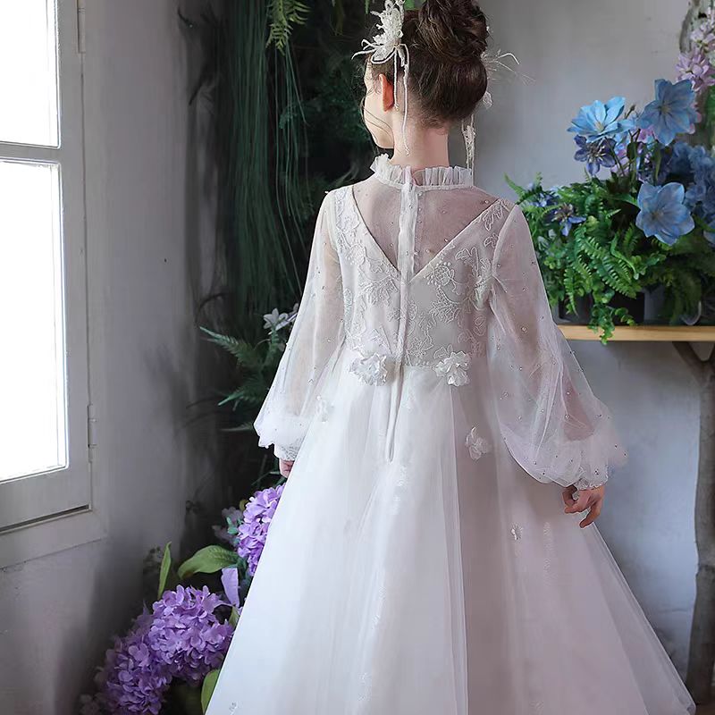 Dreamy White Princess Pageant Dress with Lace and Sleeves J089