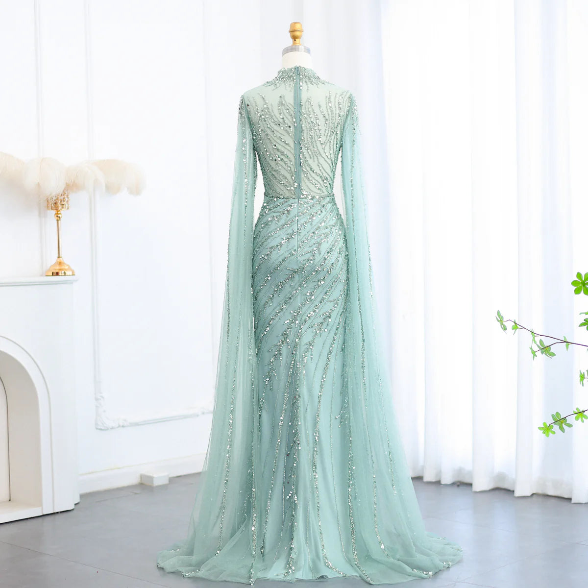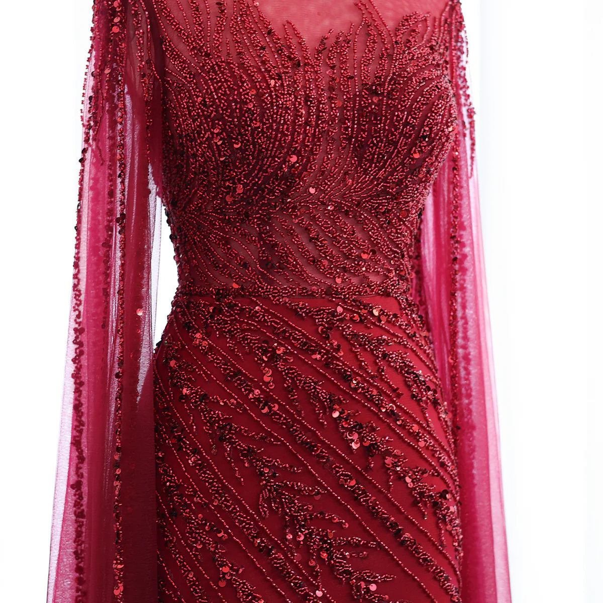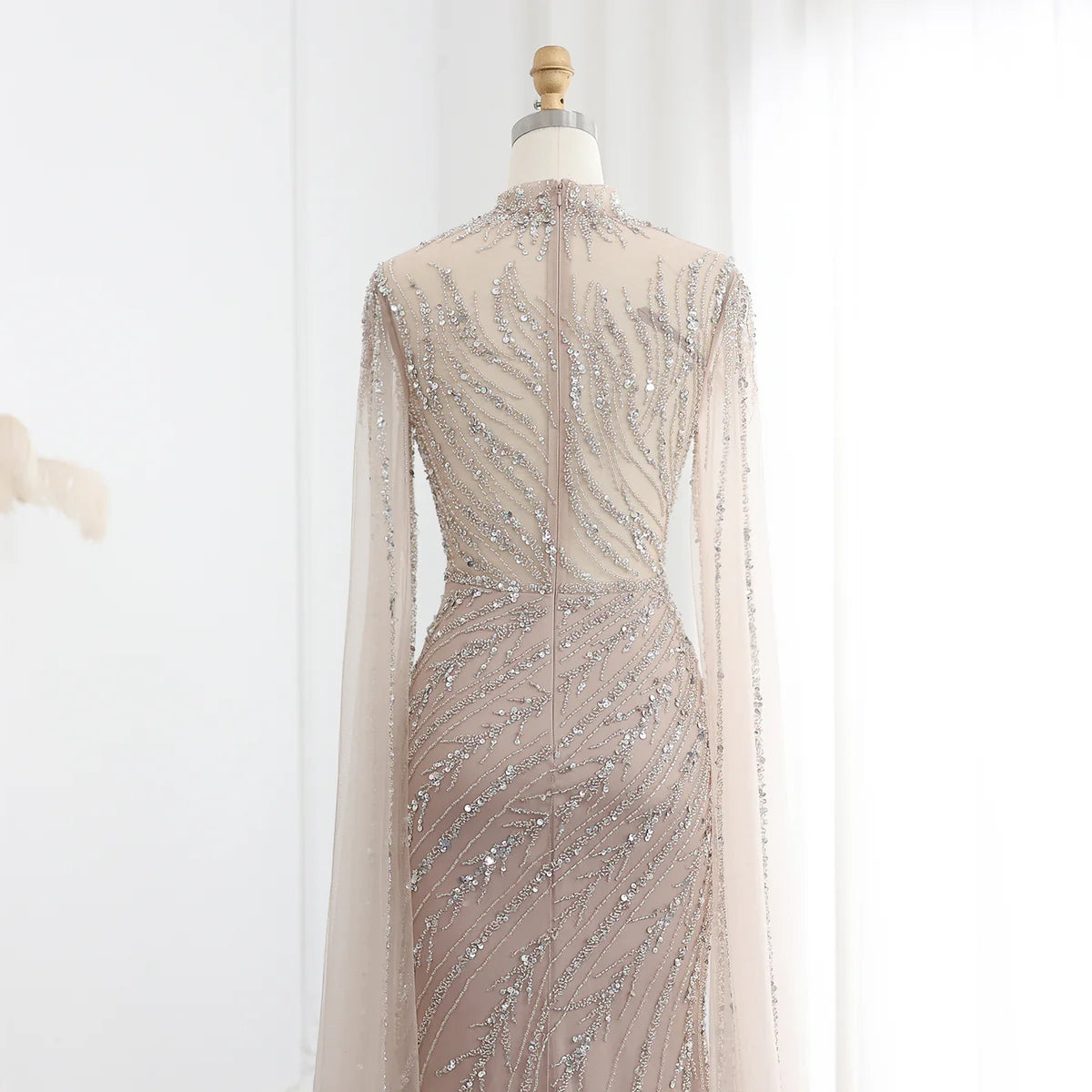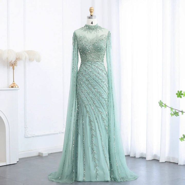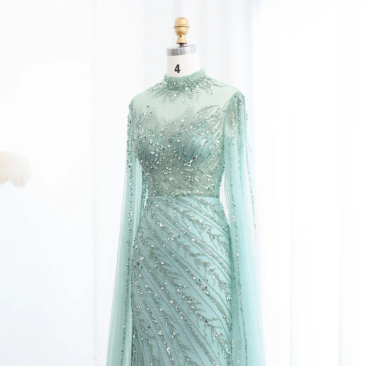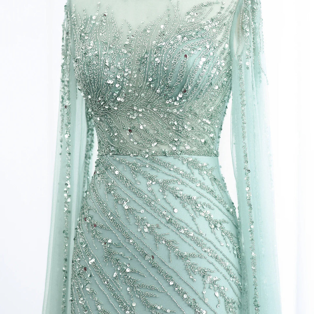 Luxury Black Nude Mermaid Evening Dresses with Cape Sleeves SS162