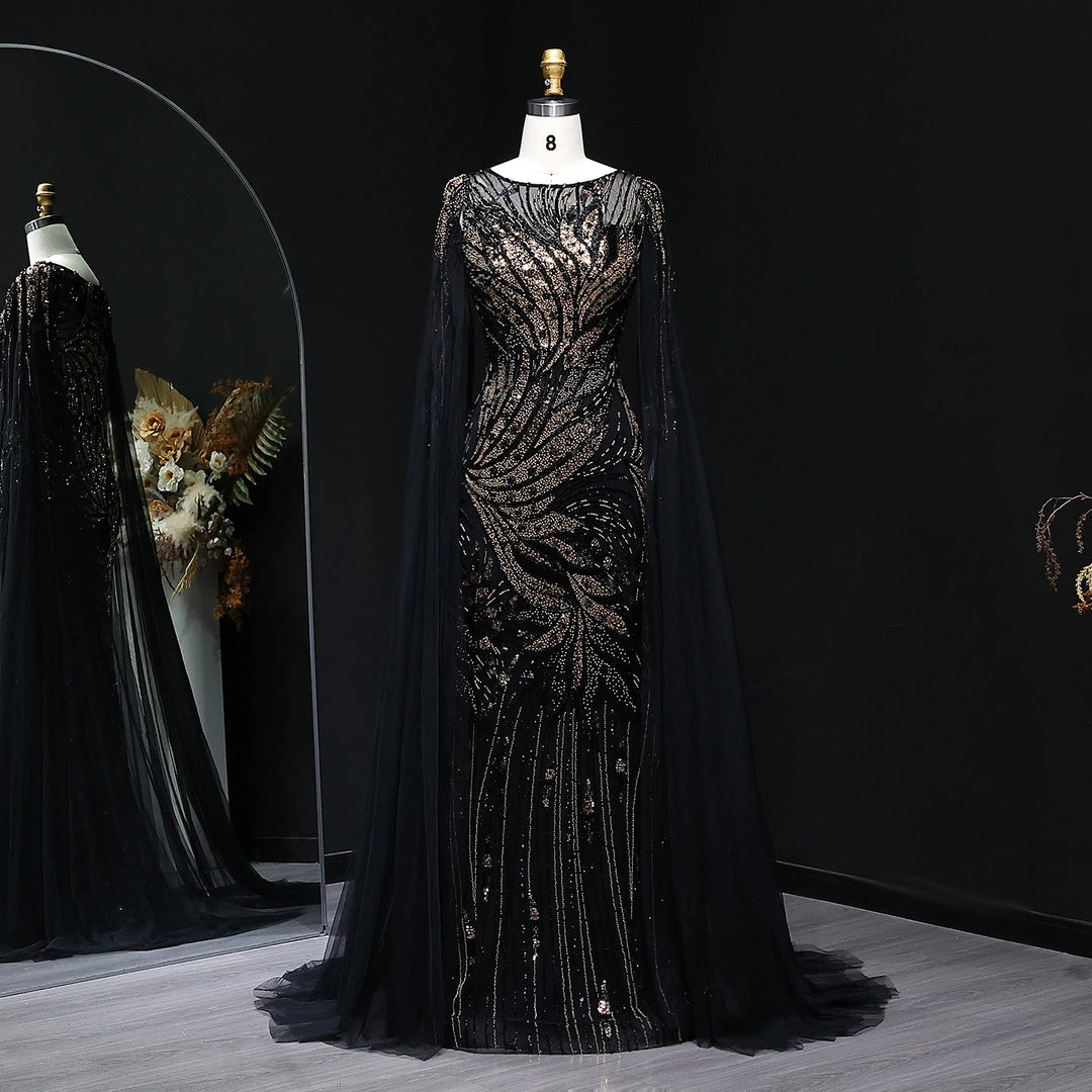 Luxury Sequin Beaded Cape Sleeve Evening Gown SS150
