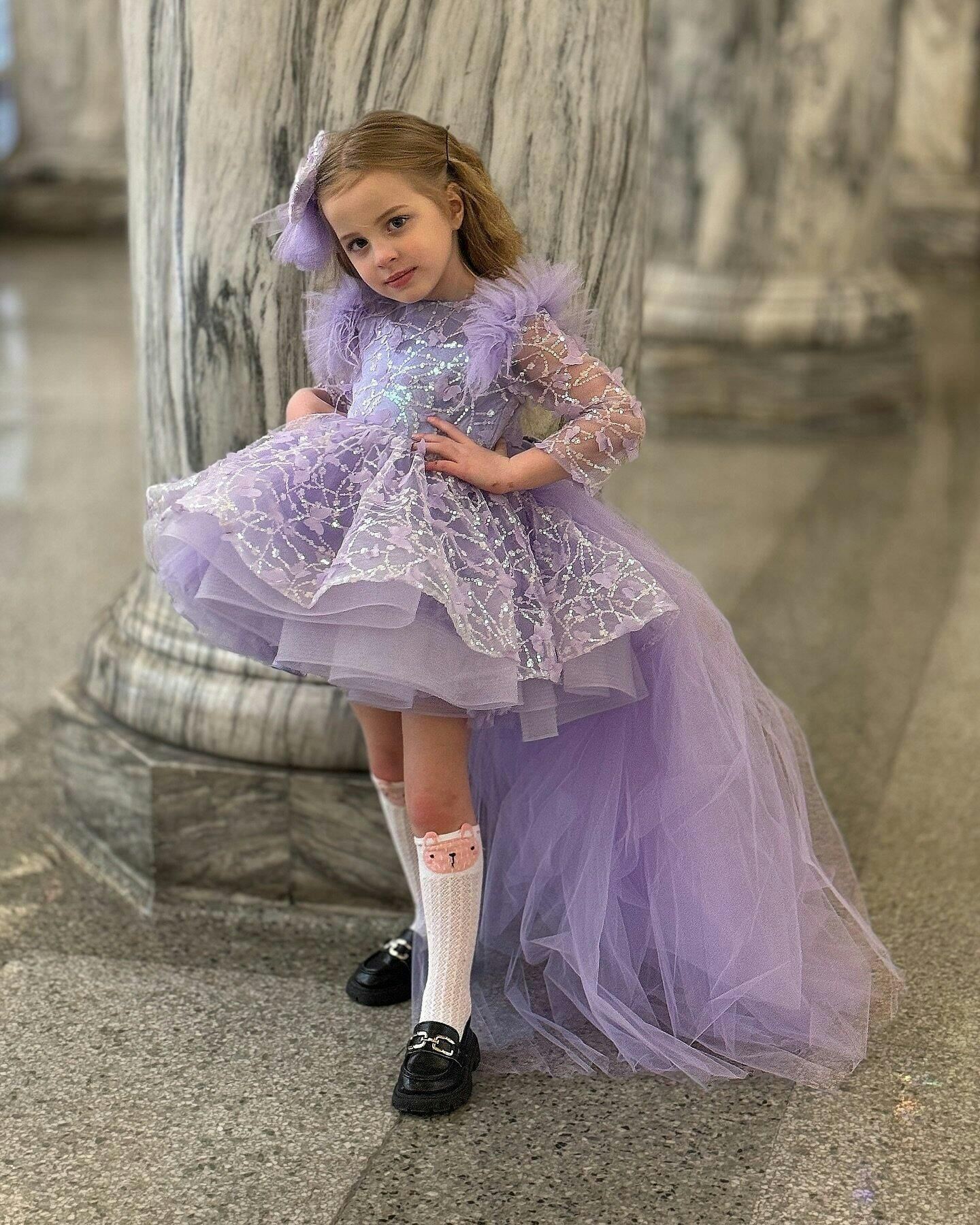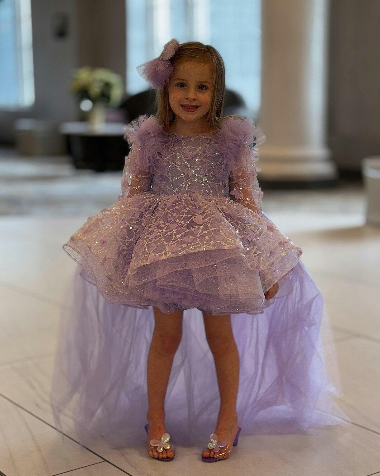 Sequins Lilac Long Sleeve Girl Dress Knee Length J287