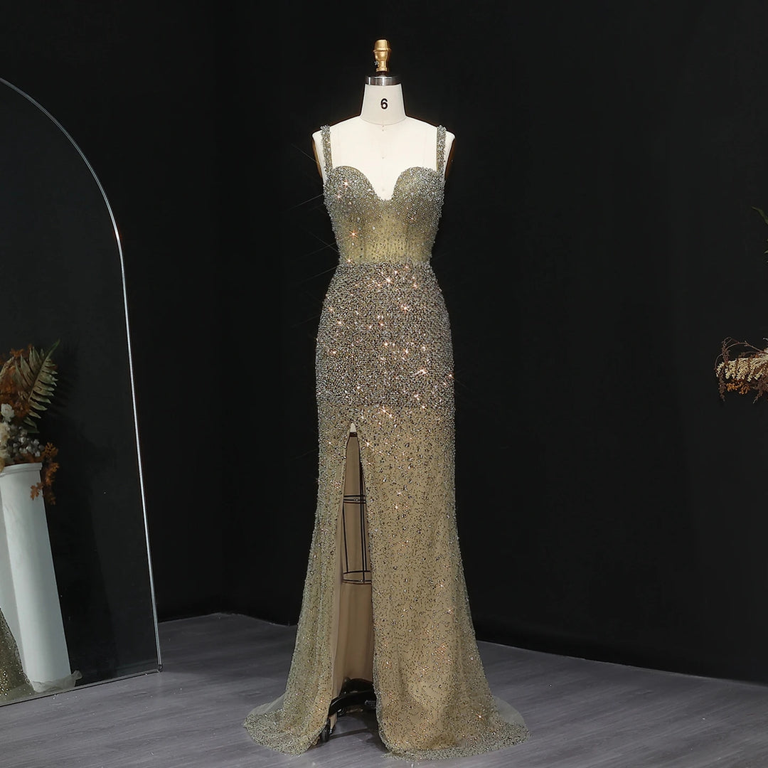 Luxury Champagne Beaded Ruffled Prom Dress SS552