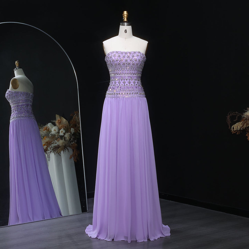 Luxury Purple Sequin Crystal A Line Evening Gown SS703