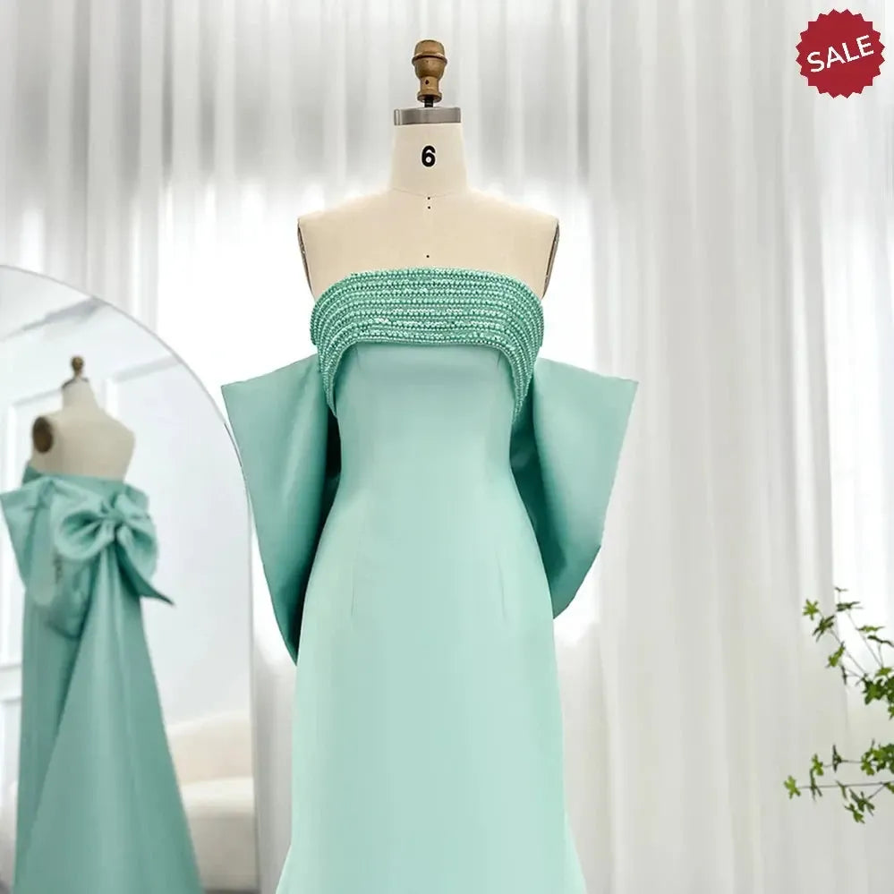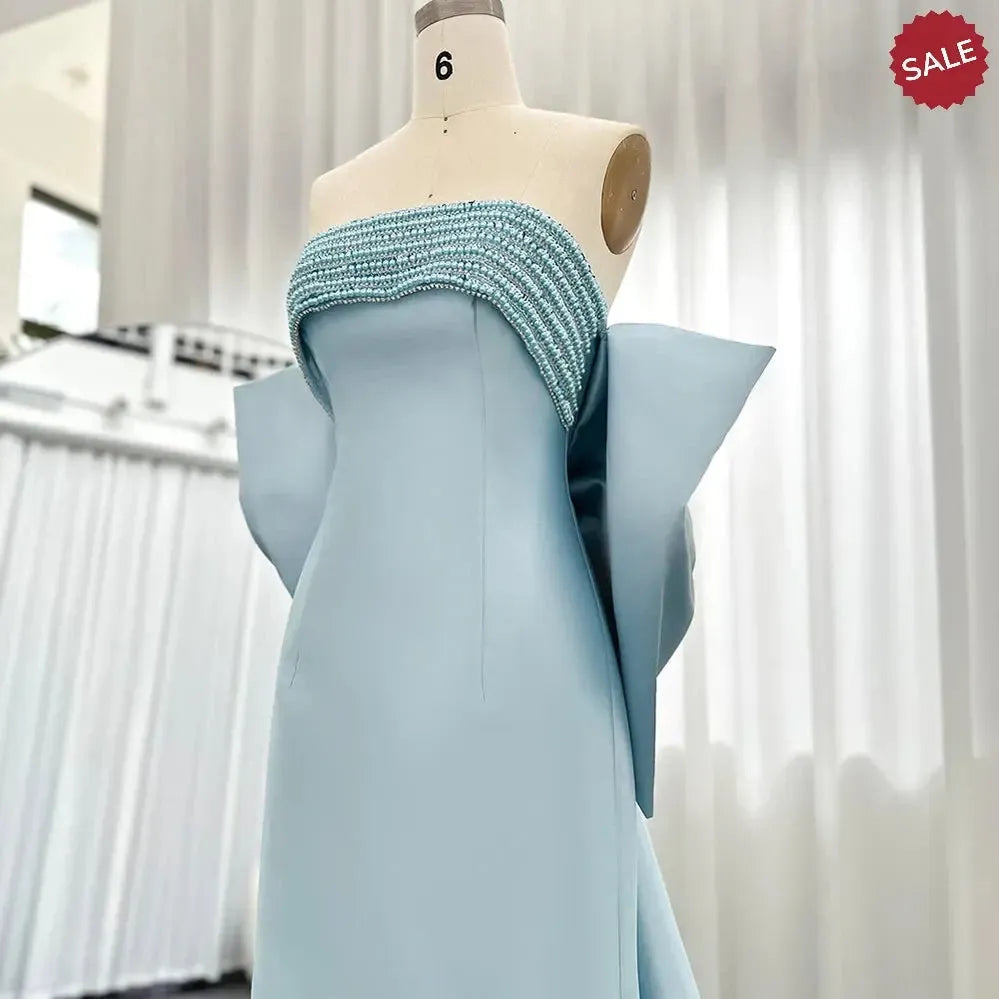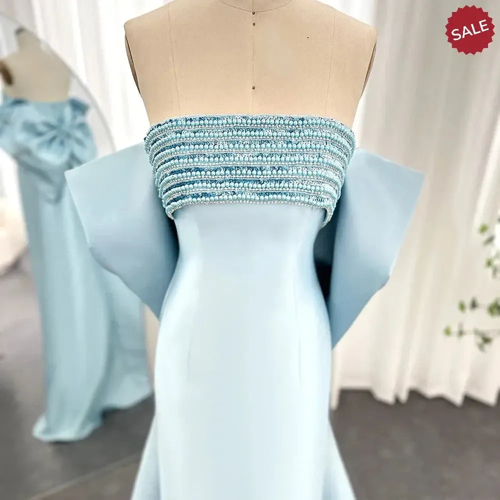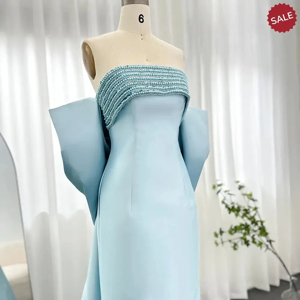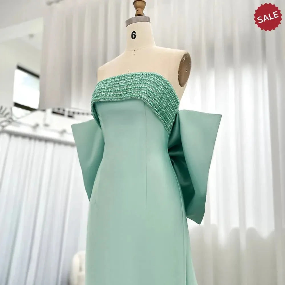 Elevate your evening look with Luxury Dubai Lilac Arabic Evening Dress. The elegant cape and intricate beading add a touch of glamour, while the bow detail exudes sophistication. Perfect for formal events or weddings, this dress is sure to make a statement.