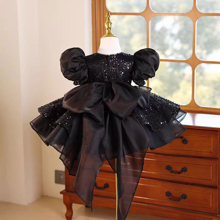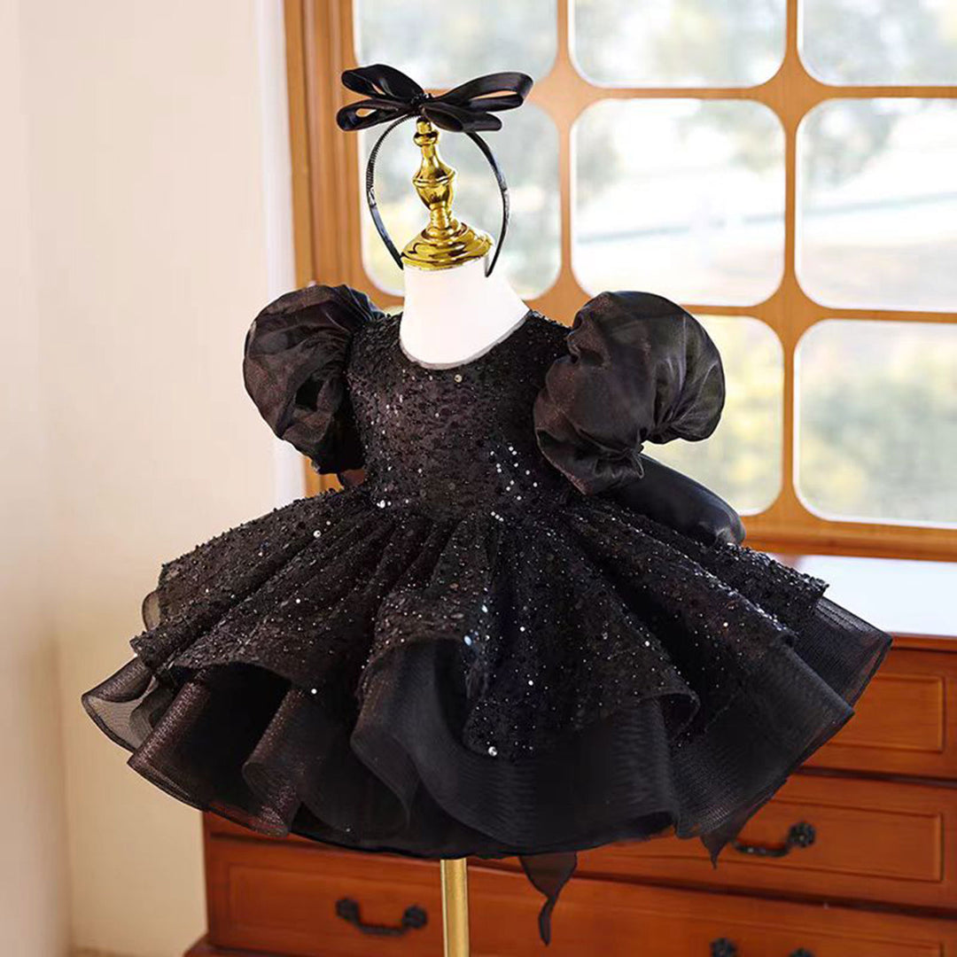 Experience the enchantment of our Dreamy Black Flower Girl Dress. Designed for royalty, this dress is perfect for your little princess's 1st birthday. Made with exquisite craftsmanship and attention to detail, it will make her feel like a true princess. Let her sparkle and shine in this regal black dress.