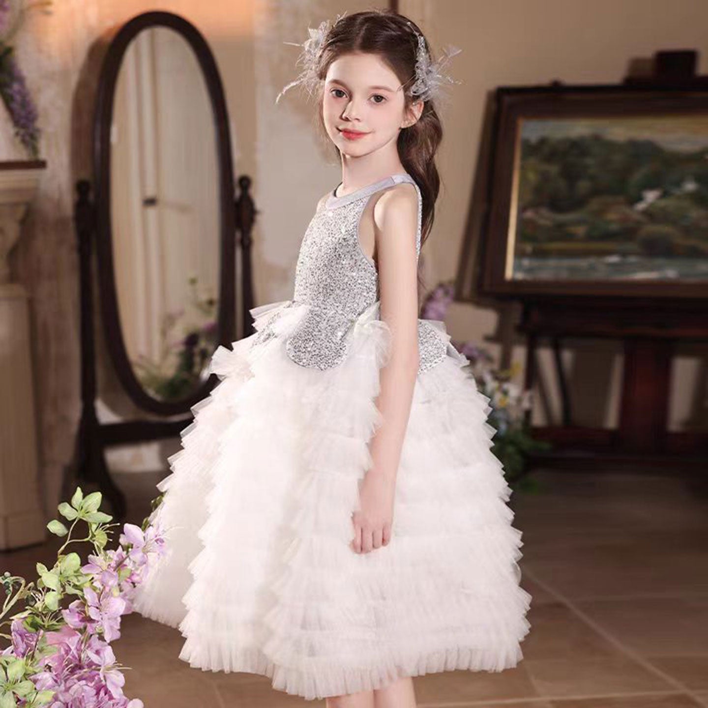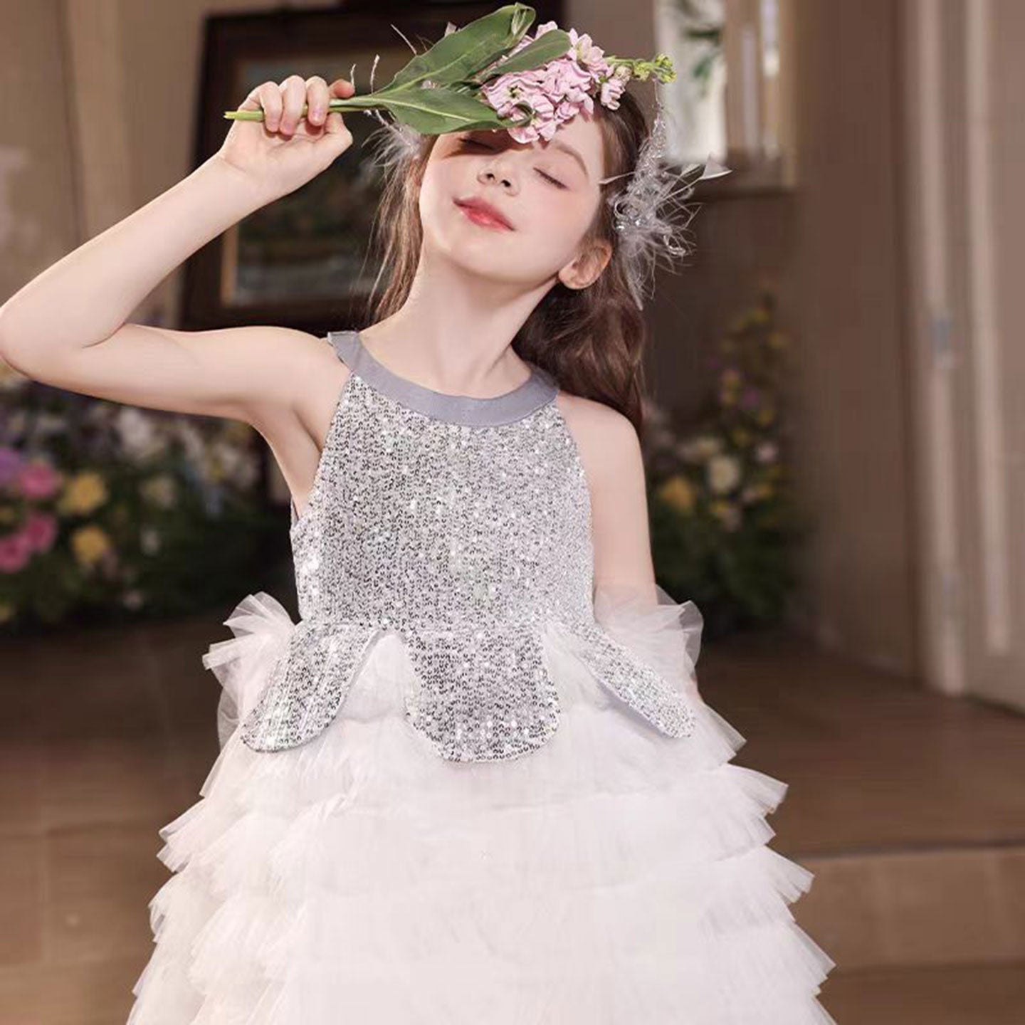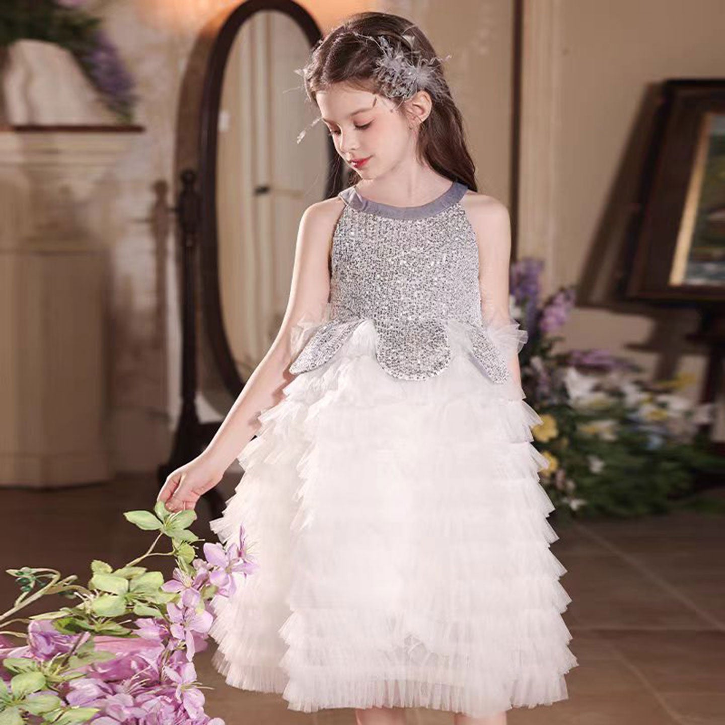 Our Dreamy Elegant Halter-Neck Sequined Tulle Girl Dress Sleeveless White J431 is the perfect choice for any special occasion. With its beautiful halter-neck design, sparkling sequins, and elegant tulle fabric, this dress is sure to make your little girl look and feel like a princess. Made with high-quality materials, it offers both comfort and style, making it a must-have in your child's wardrobe. Perfect for weddings, parties, and more, this dress will surely turn heads.