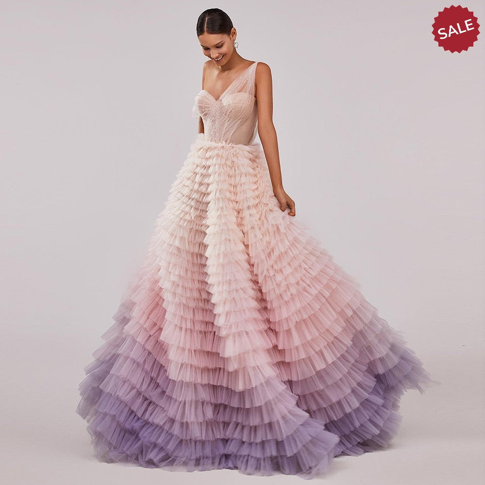 Luxury Lilac Ruffles Dubai Evening Dresses for Wedding Party Dresses SS579