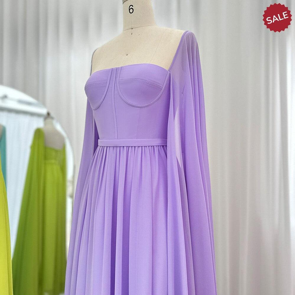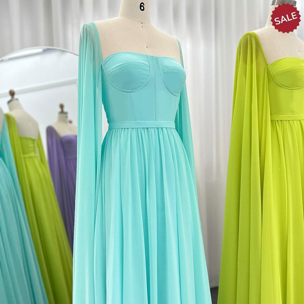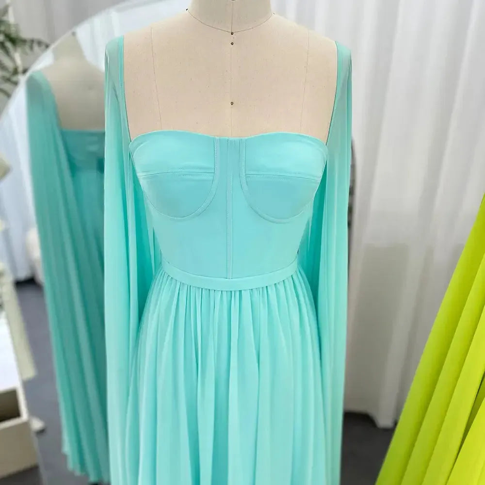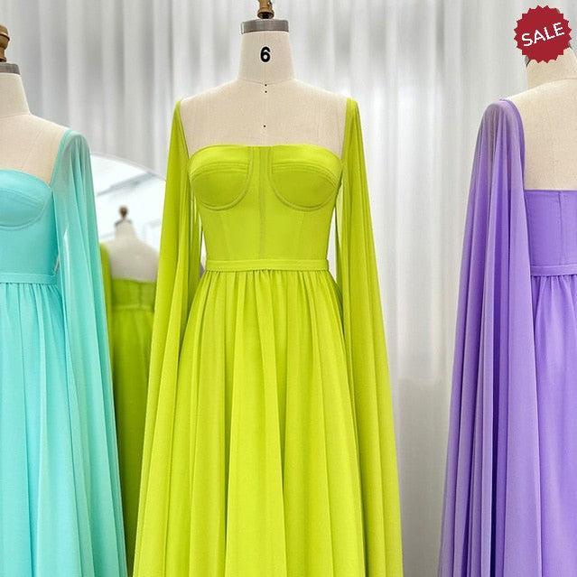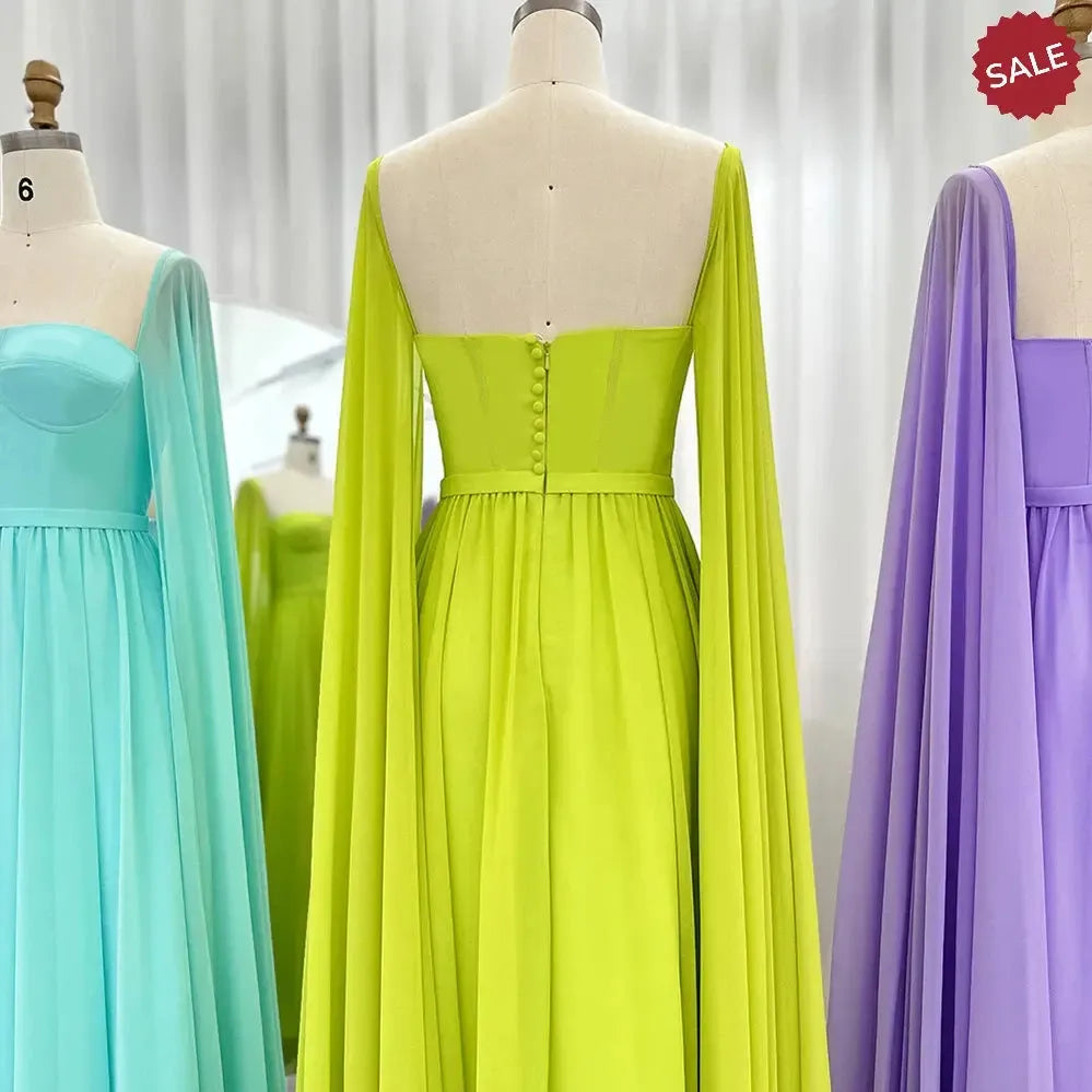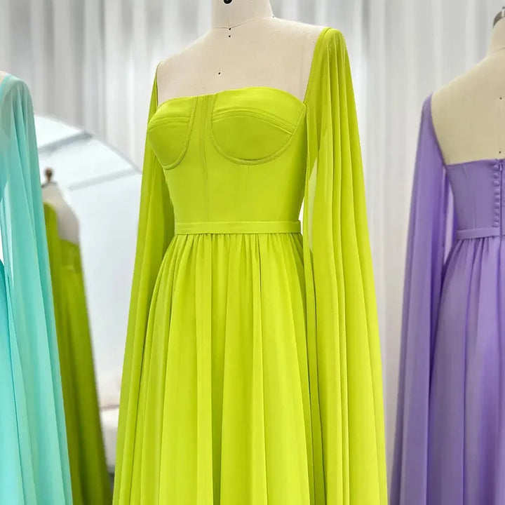 Saudi Arabic Lemon Yellow Dubai Evening Dresses with Cape SF076