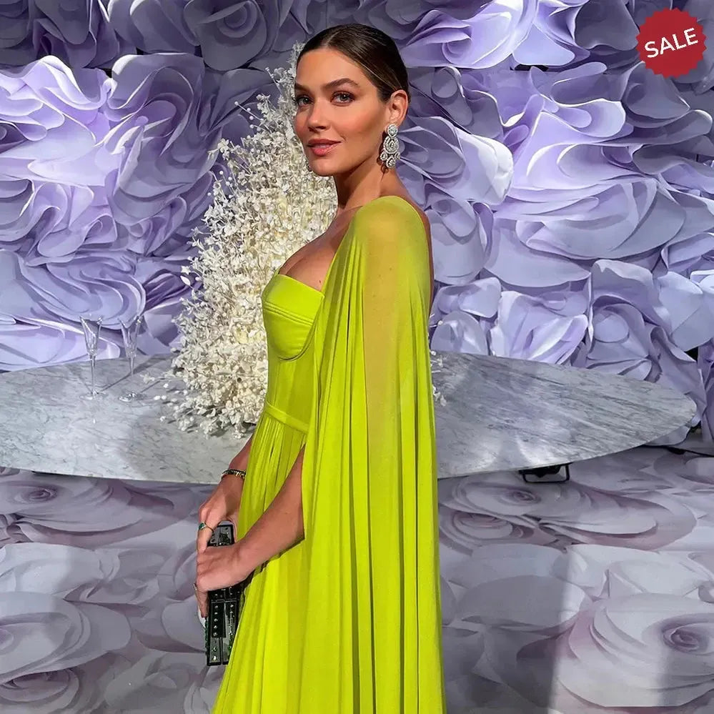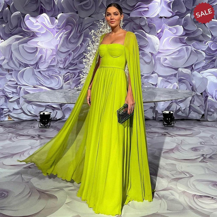Experience luxury and elegance with our Dreamy Vow Saudi Arabic Lemon Yellow Dubai Evening Dresses. Featuring delicate cape sleeves and a flattering design, these dresses are perfect for any formal occasion. Make a statement with our stunning lemon yellow color that will surely turn heads. Elevate your wedding or party look with these elegant gowns.