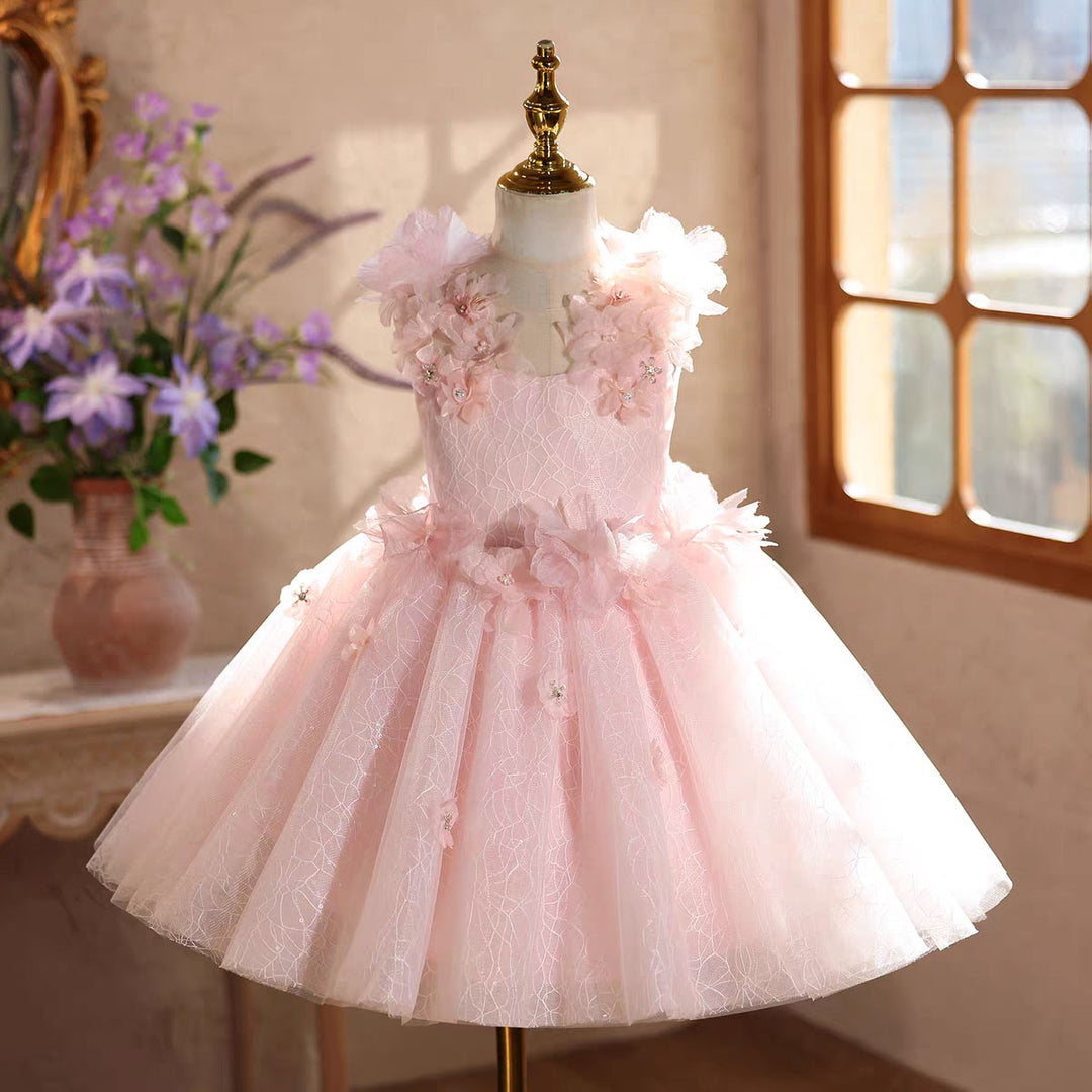Luxury Pink 3D Floral Birthday Party Flower Girl Dress D238