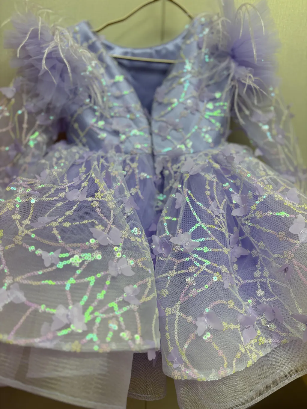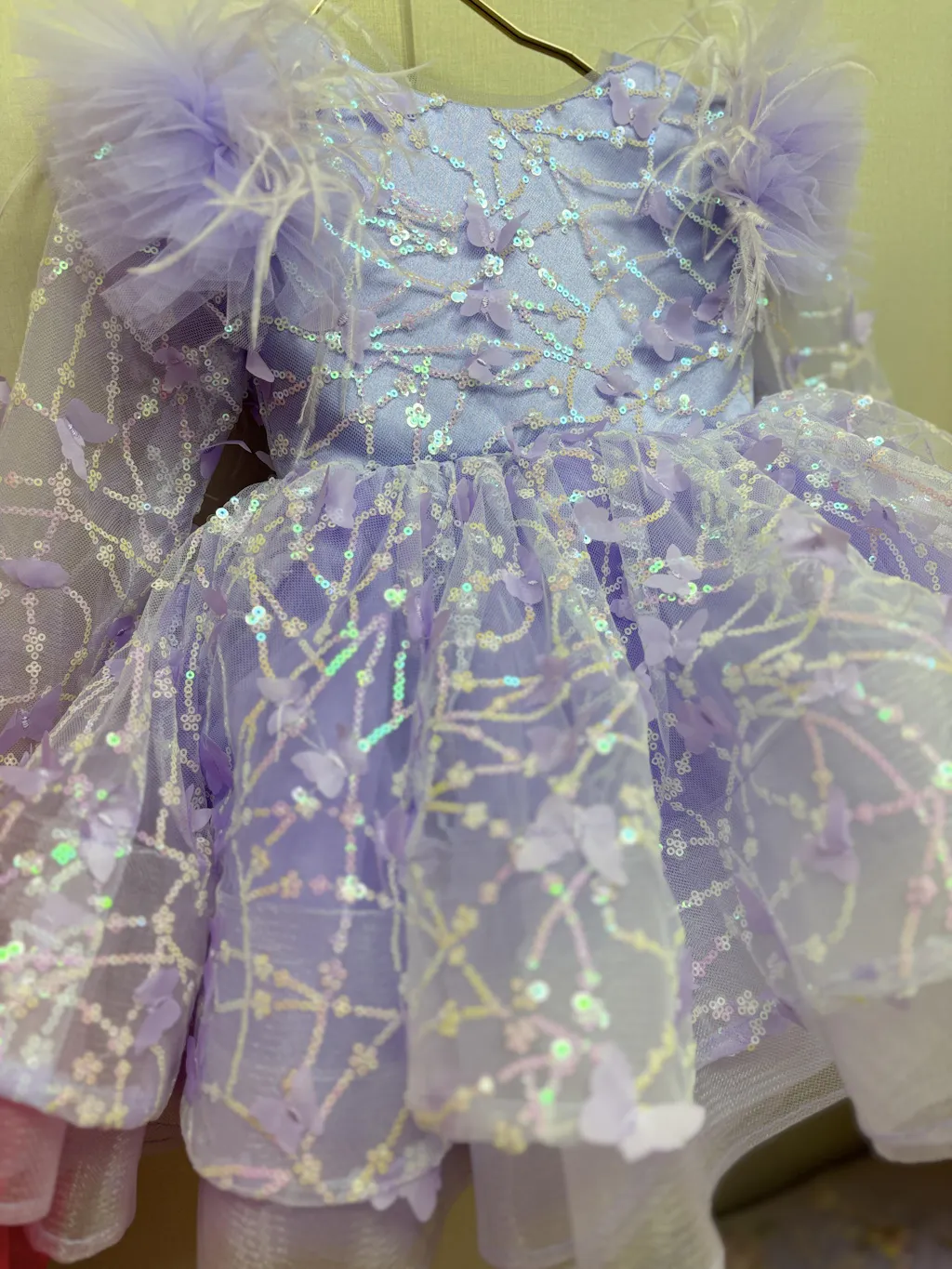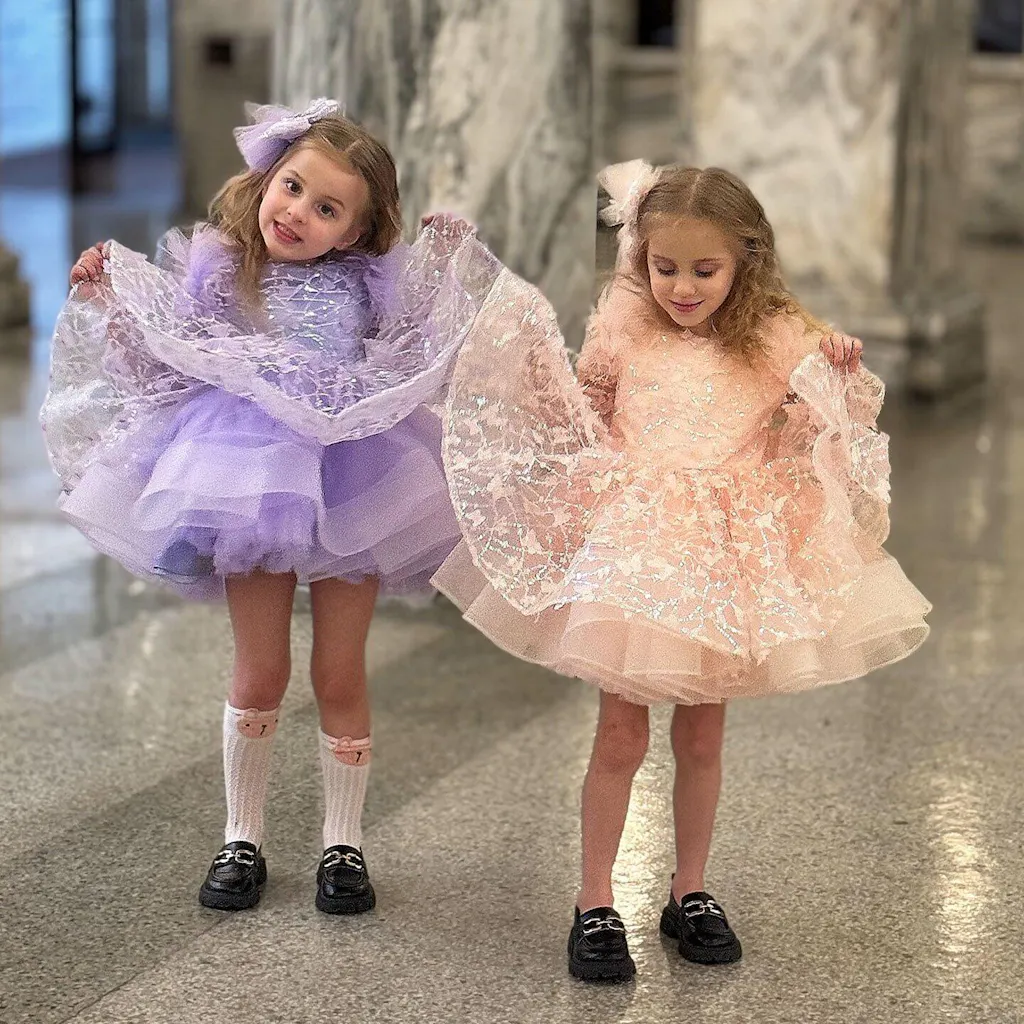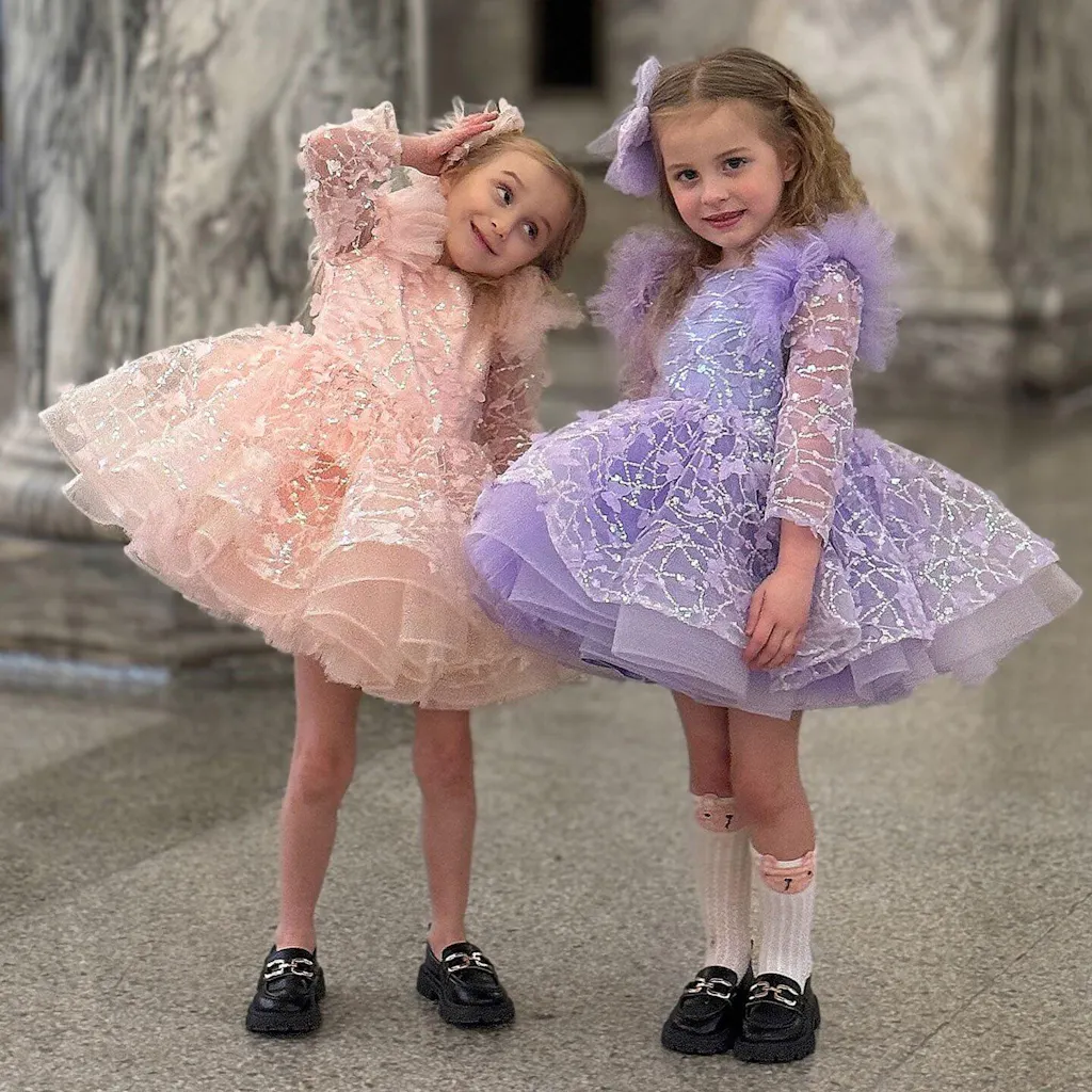 Sequins Flower Girl Dress Knee Length Long Sleeve Party Gown J241