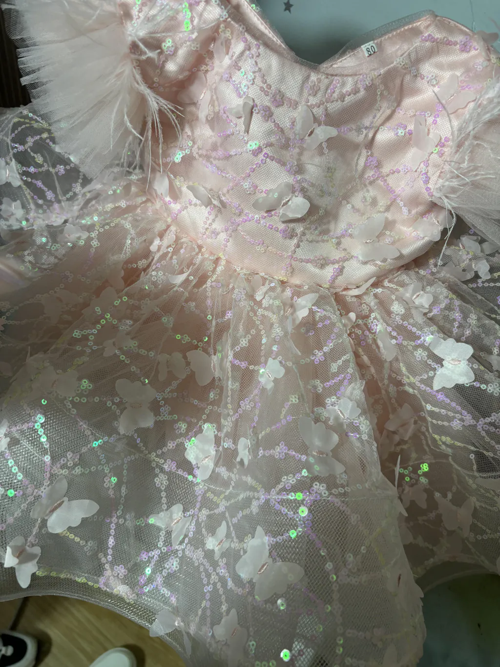 Elevate any special occasion with our Dreamy Sequins Flower Girl Dress. Adorned with shimmering sequins, this knee-length Arabic princess gown will make her feel like a true princess. Perfect for parties and events, this dress is sure to turn heads. Make her dreams come true with J241.