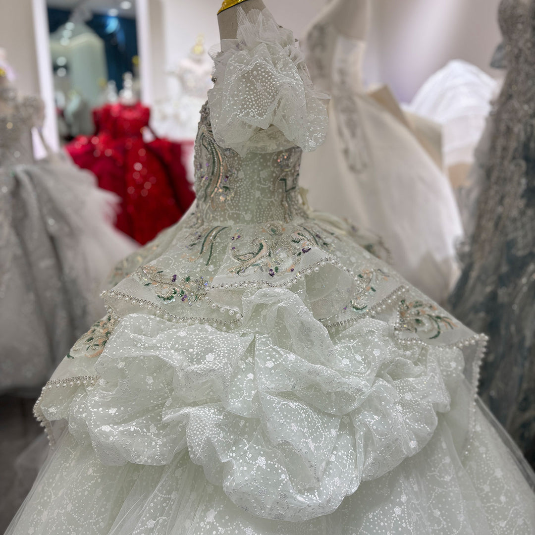 Luxury Green Flower Girl Dress for Kids Birthday Party Gown D170