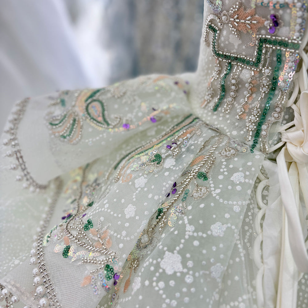 Luxury Green Long Sleeve Princess Flower Girl Dress for Birthday D213