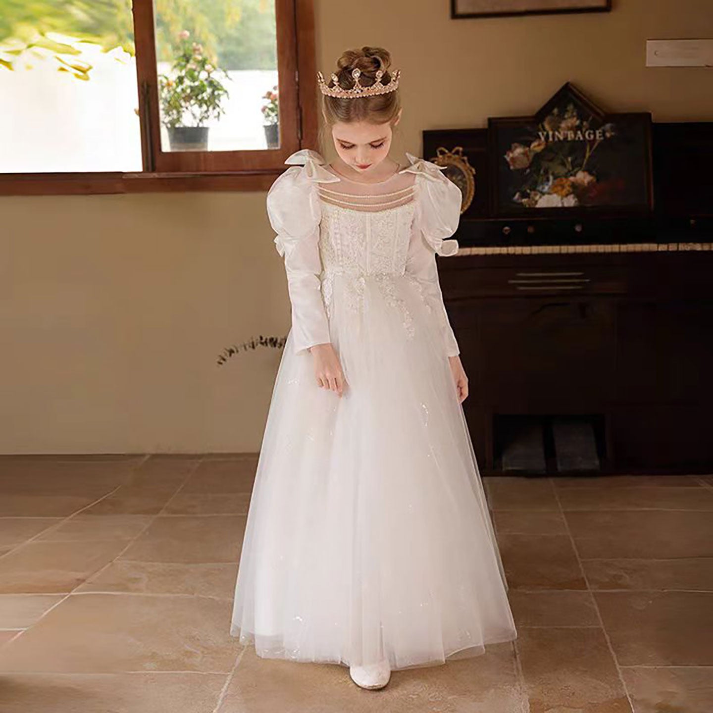 Bow Embroidered Tulle Flower Girl Dress Princess D310