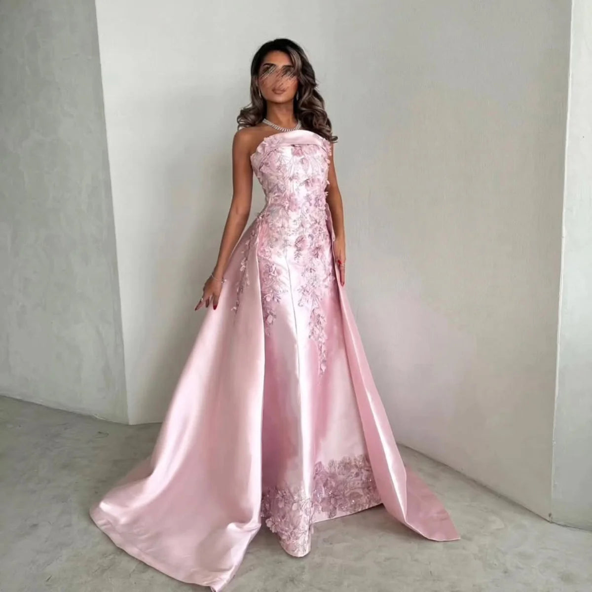 Luxury Blush Pink Strapless Evening Dress with Overskirt XD067