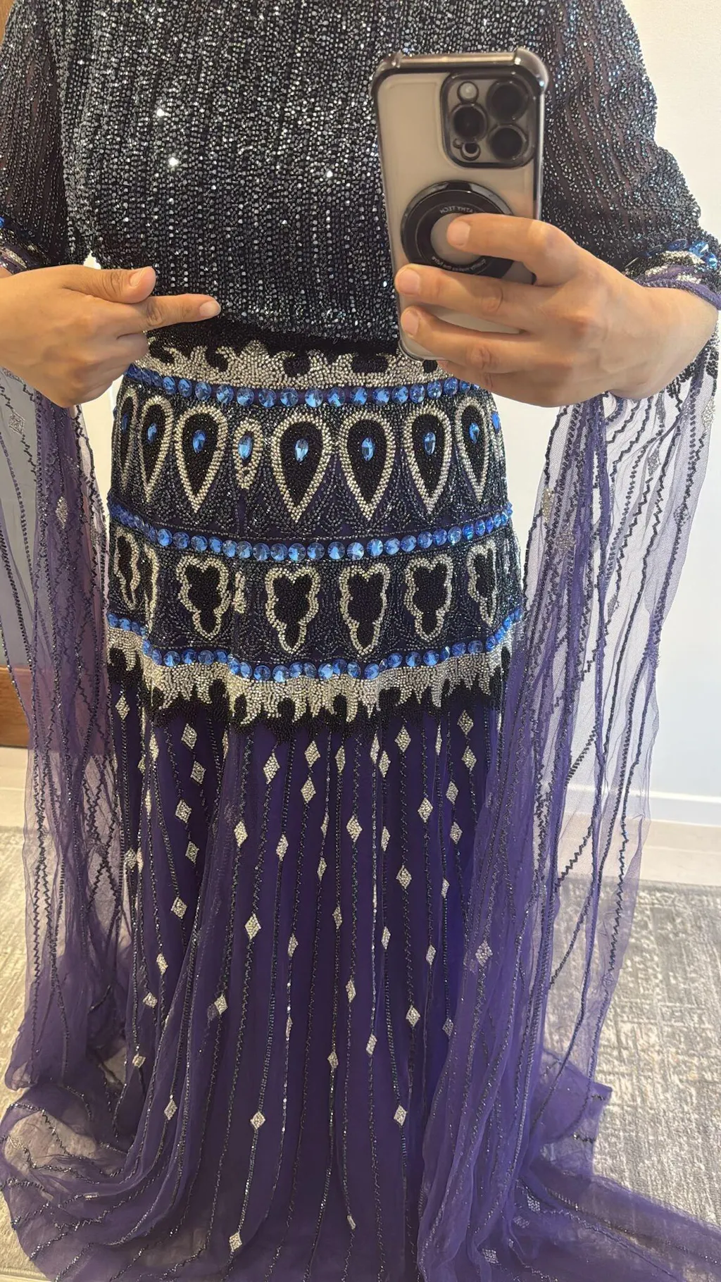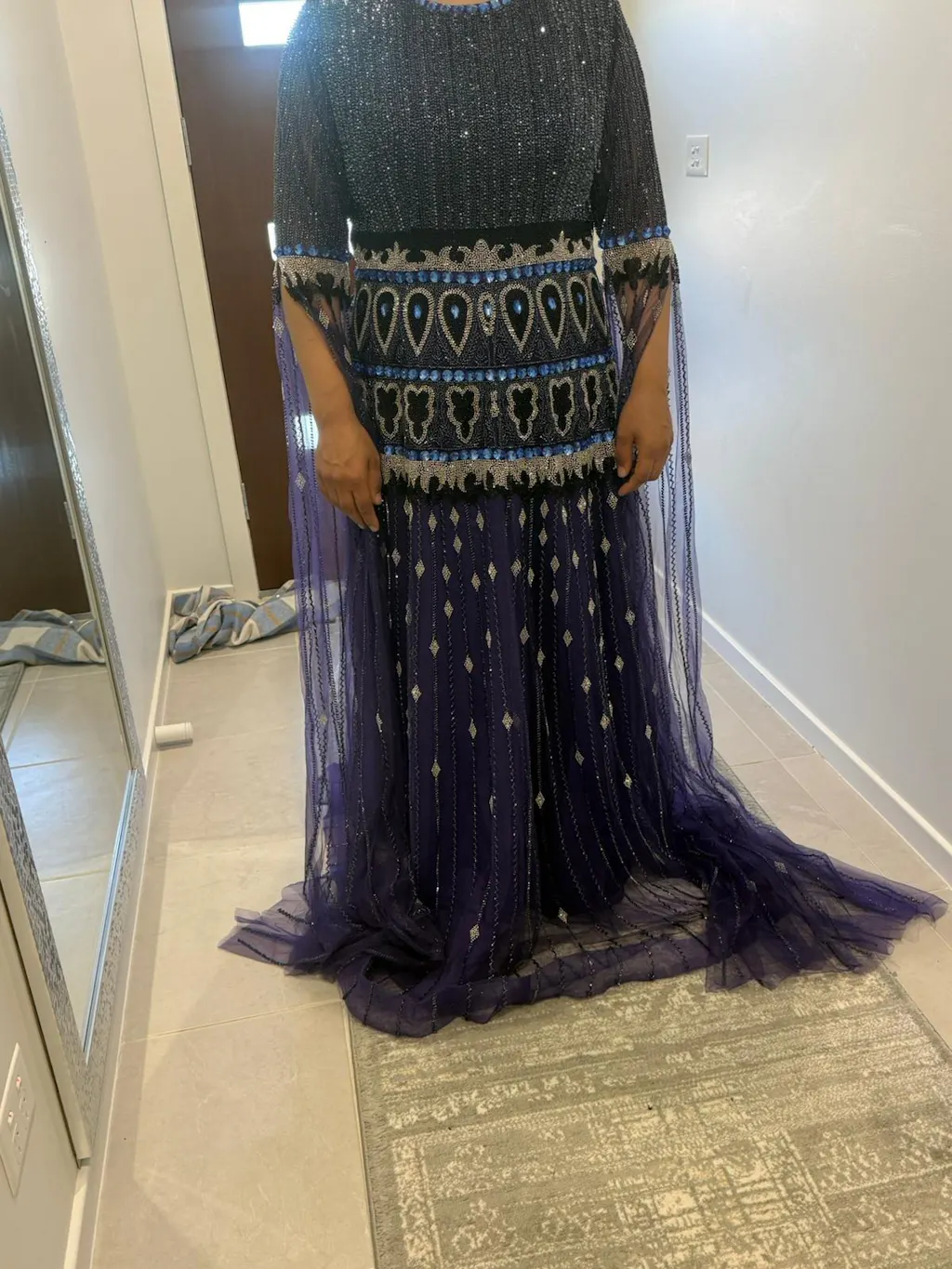 Elevate your evening presence with this sophisticated cape gown, where timeless elegance meets contemporary design. Intricate crystal embellishments cascade across the bodice and sleeves, catching light with every movement for a luminous effect. The dramatic cape silhouette adds architectural drama while the long sleeves provide refined coverage. Crafted for those who appreciate couture-quality details, this dress commands attention at galas, formal celebrations, and red-carpet moments. A statement piece that transforms any special occasion into an unforgettable experience.